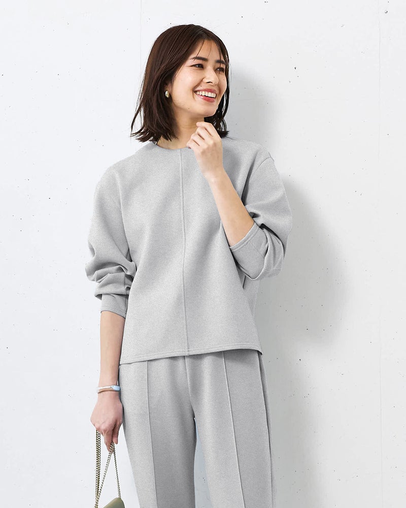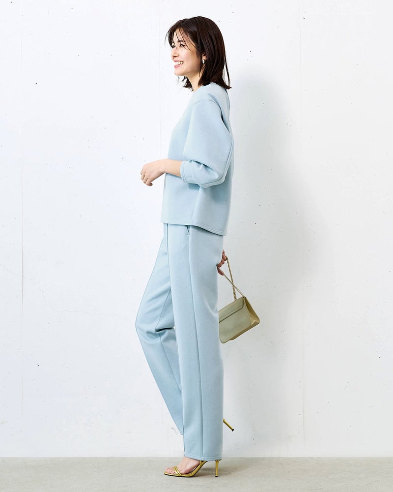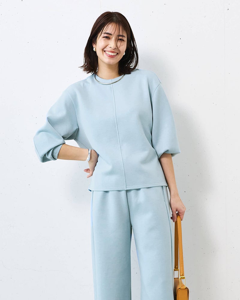 - コンパクトな丈感のトップスはワイドパンツと合わせて短め丈のトップスは、センター切り替えがすっきり見えを演出。袖はふんわりボリュームをもたせることでフェミニンな表情をプラスしました。同素材のワイドパンツ(32769)とセットで着こなすことで、抜群の脚長効果&洒落見えを発揮。もちろん単品でも着まわしていただけます。