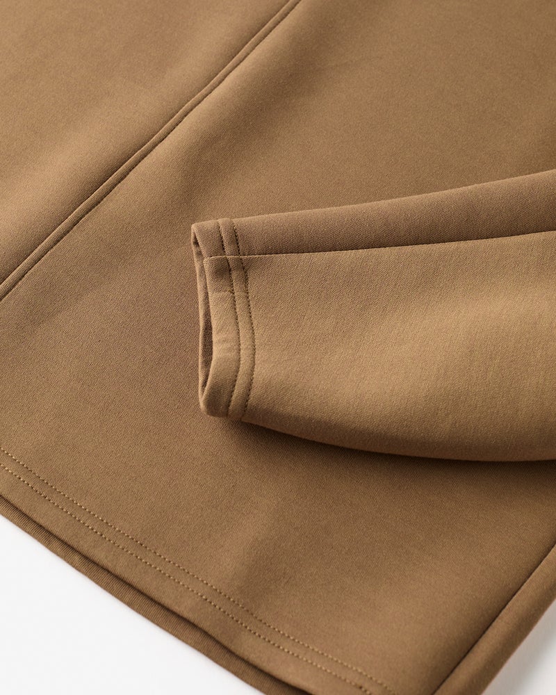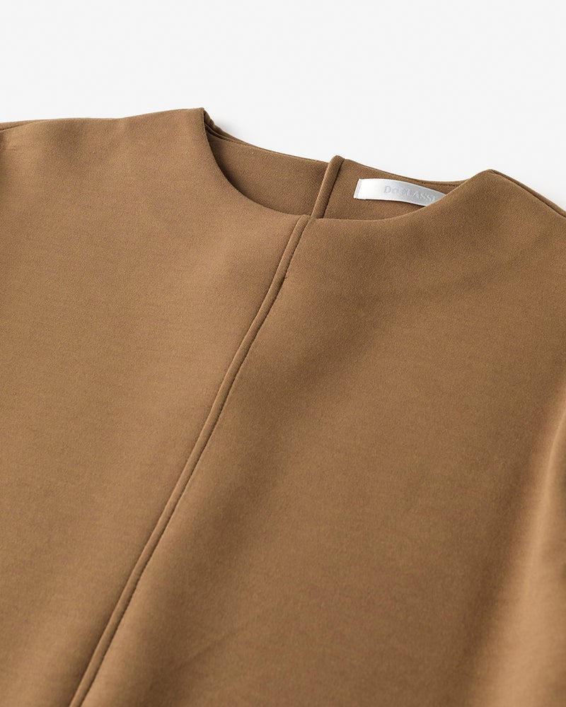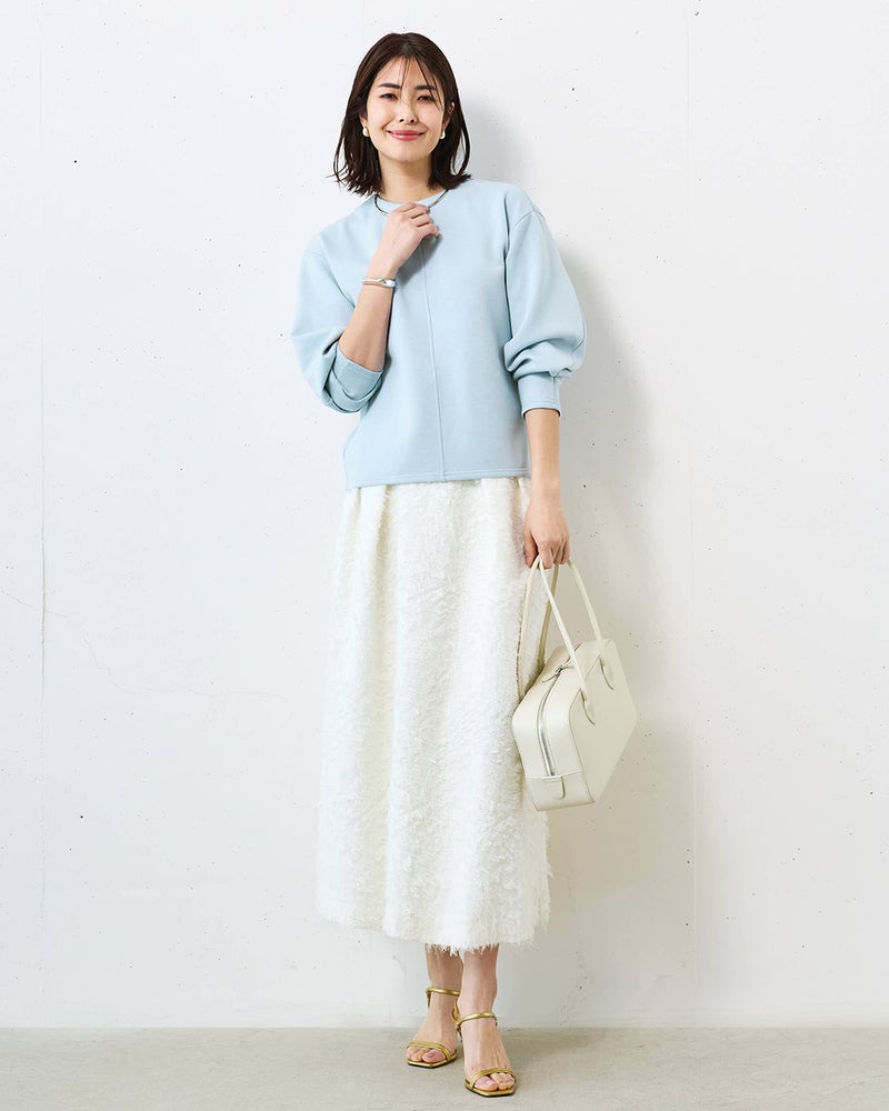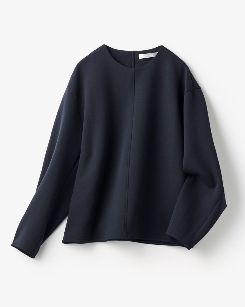 - ハリと光沢のあるダンボールニットを厳選素材にはダンボールニットと呼ばれるストレッチ素材を採用。表と裏、2枚の生地を糸でつなぎ合わせたダンボール構造により、軽くふっくらハリがあり、ストレスフリーに美シルエットを表現できます。