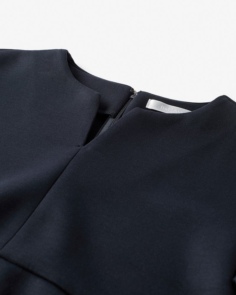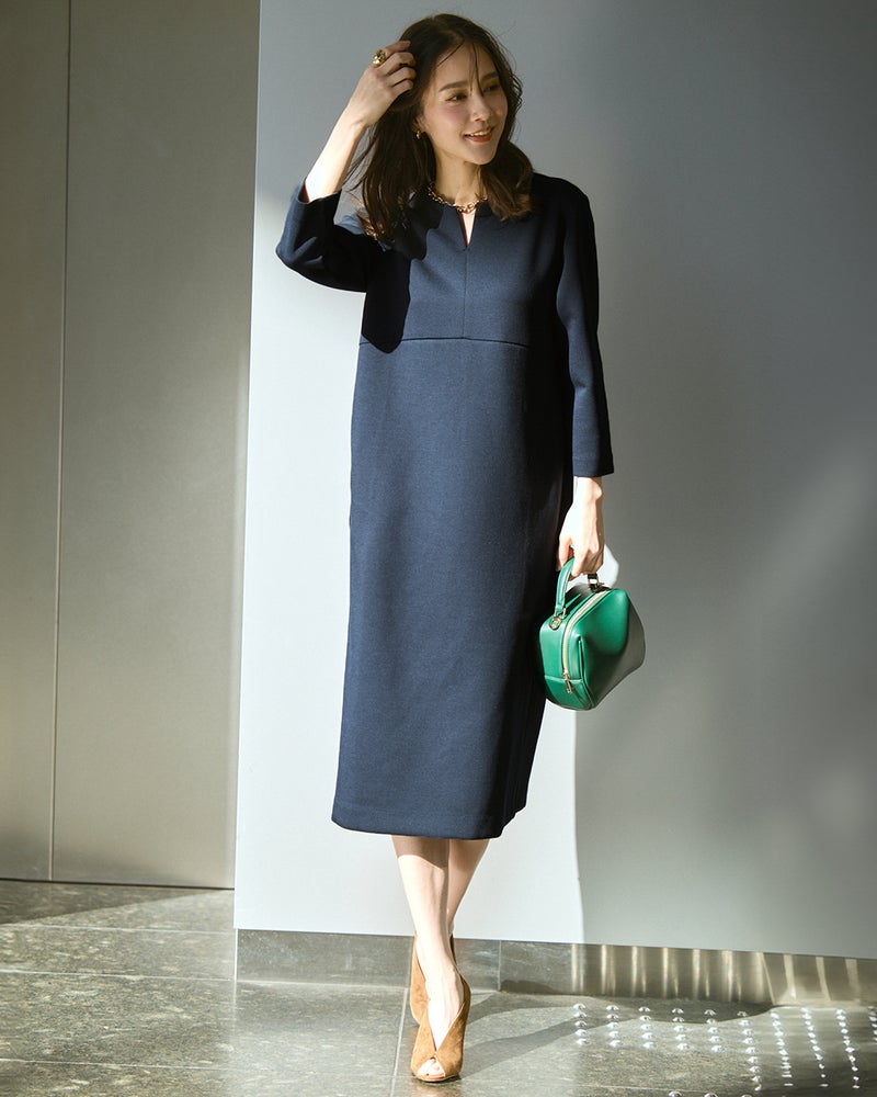 着るだけでスタイルアップときちんと見えの両方が叶う、コクーンシルエットのワンピース。首もとや手首を美しく見せるカッティングです。ハリのあるカットソー素材で、着心地もコンフォート。