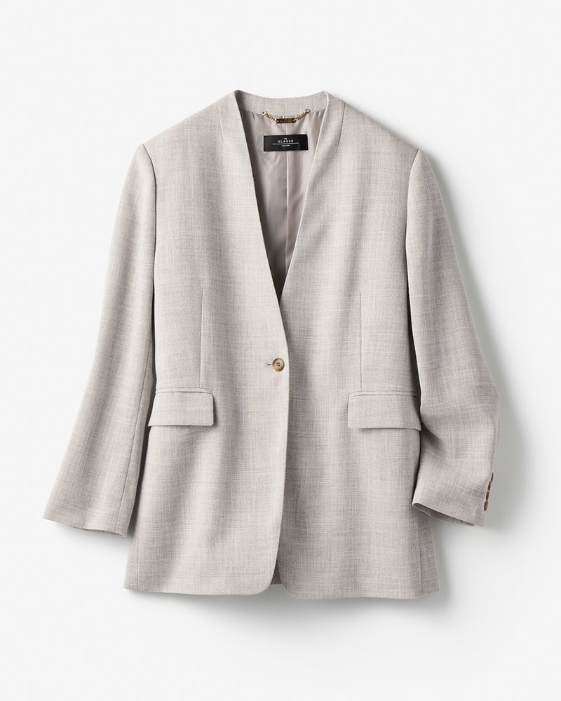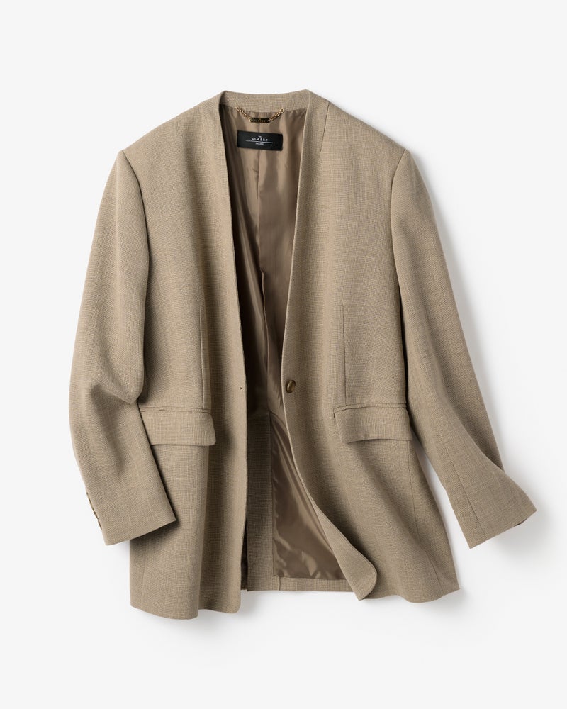 絵になる抜け感ノーカラージャケット