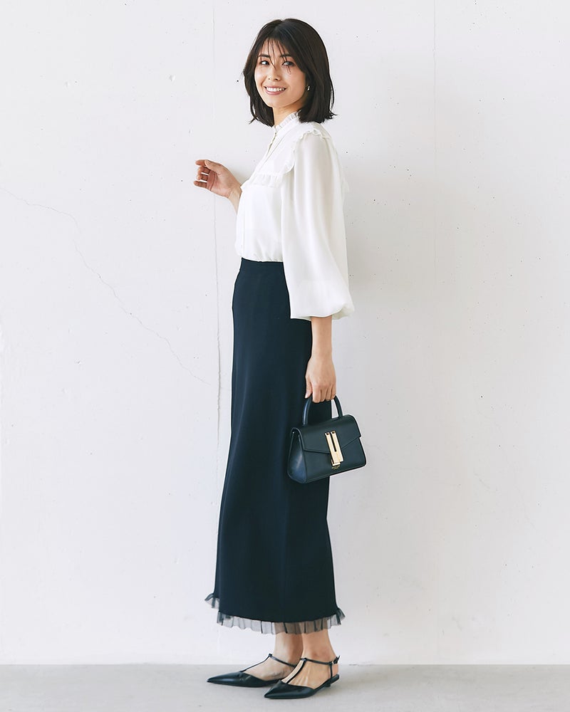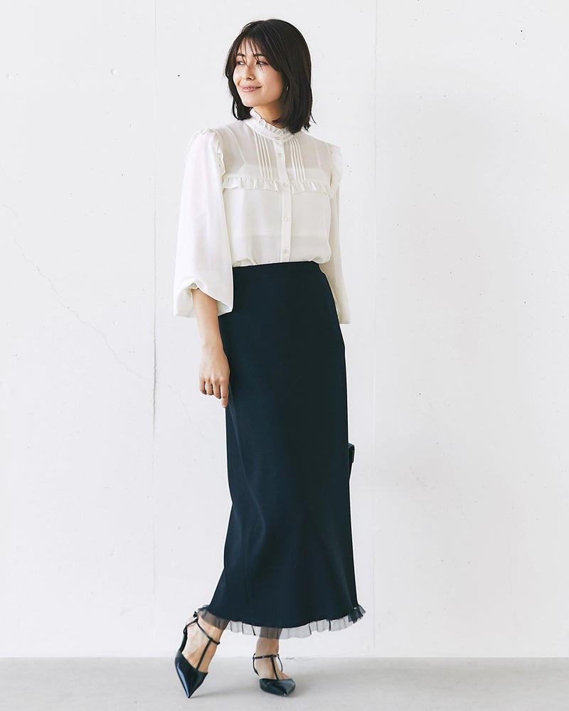 • シアーシフォン・ピンタックフリルブラウス 詳細画像 ブラックパターン 6