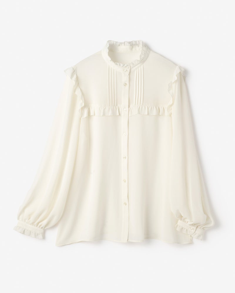 • シアーシフォン・ピンタックフリルブラウス 詳細画像 アイボリー 1