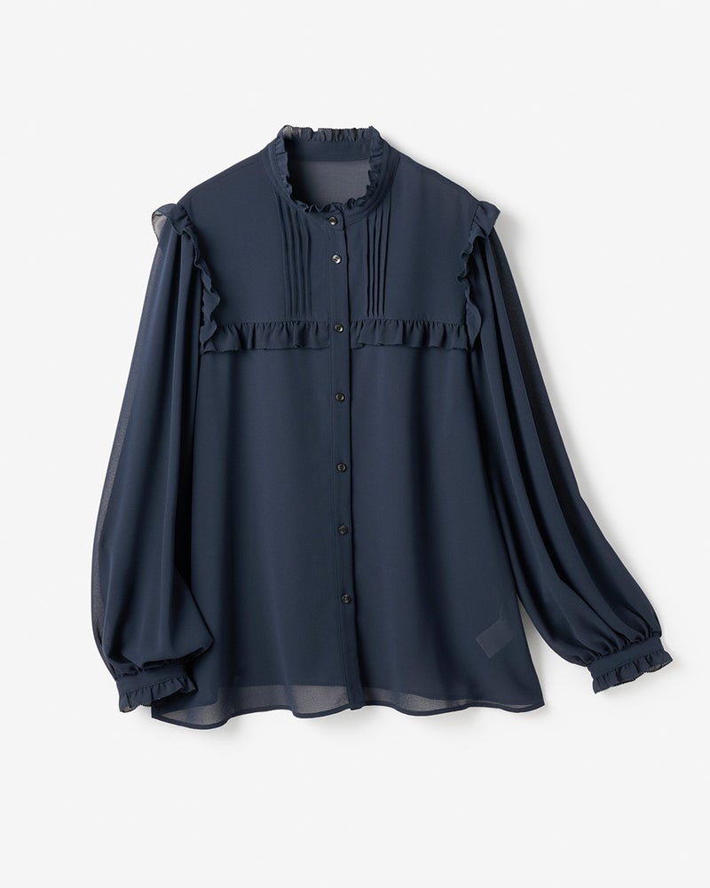 • シアーシフォン・ピンタックフリルブラウス 詳細画像 ネイビー 1
