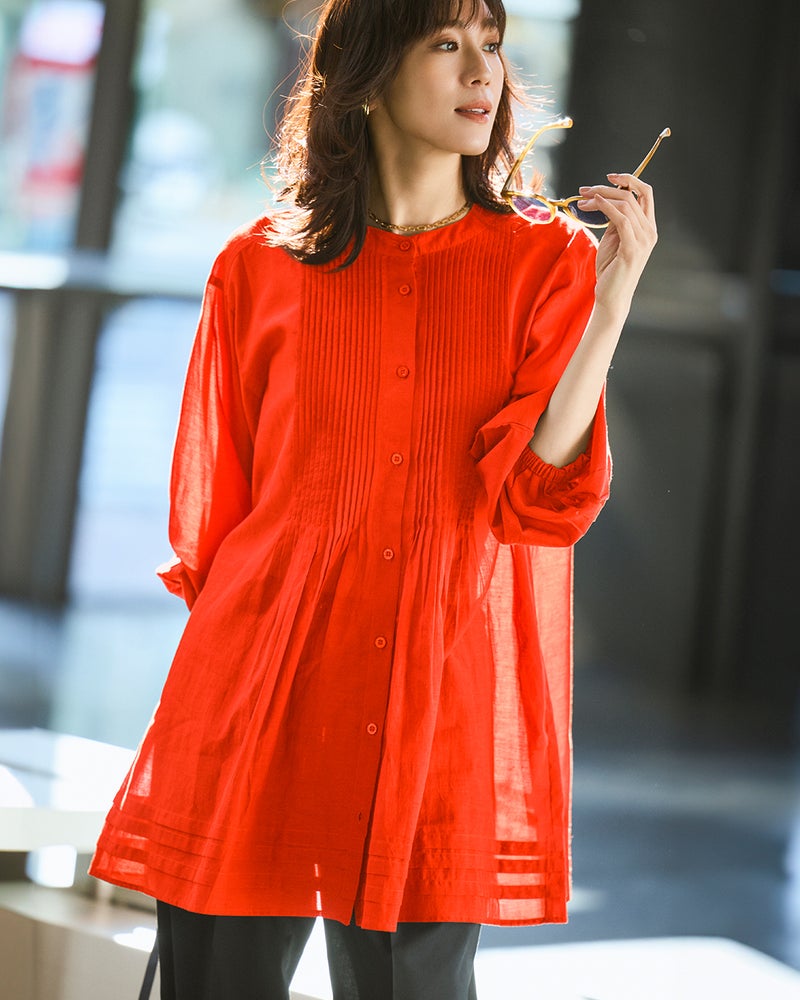 • コットンボイル・ピンタックロングブラウス 詳細画像 スカーレット 1