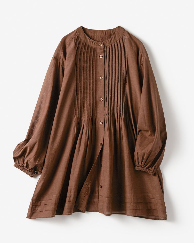 • コットンボイル・ピンタックロングブラウス 詳細画像 ブラウン 1
