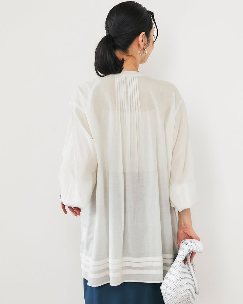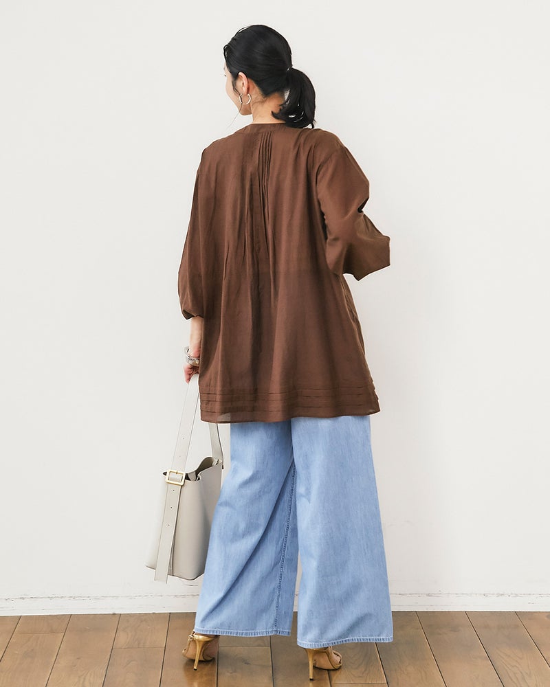 コットンボイル・ピンタックロングブラウス