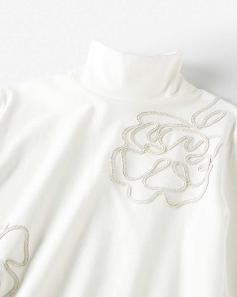• 超長綿ハイネック/フラワーモチーフ 詳細画像 オフホワイト 2