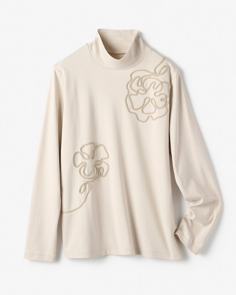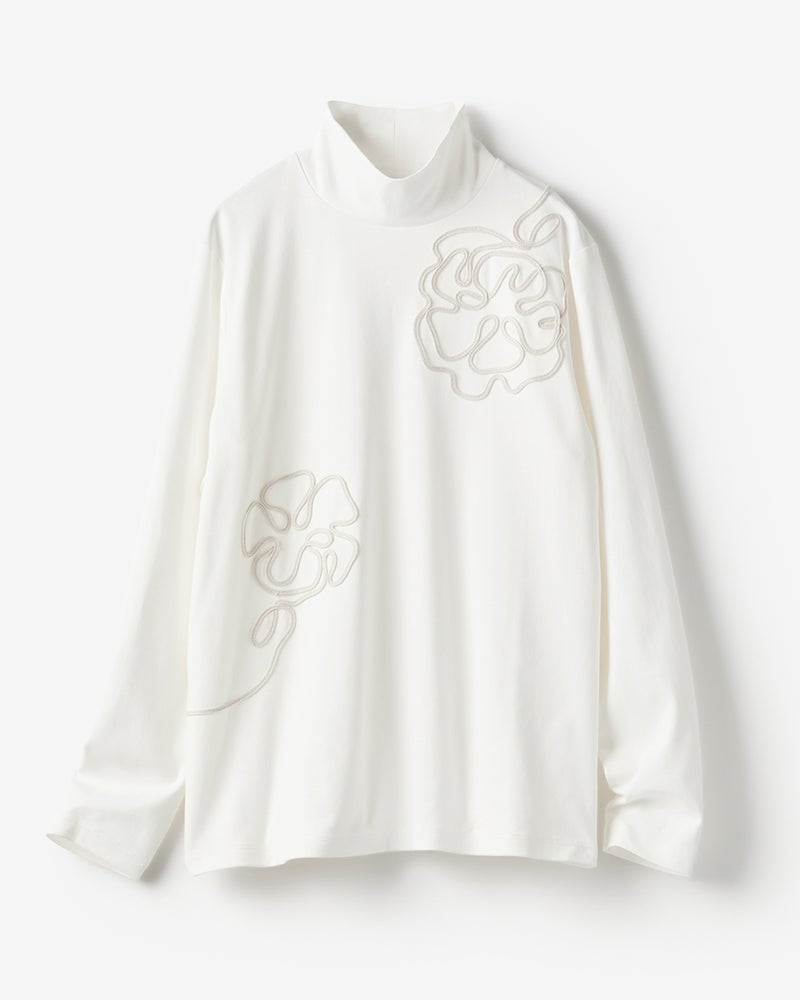 • 超長綿ハイネック/フラワーモチーフ 詳細画像 オフホワイト 1