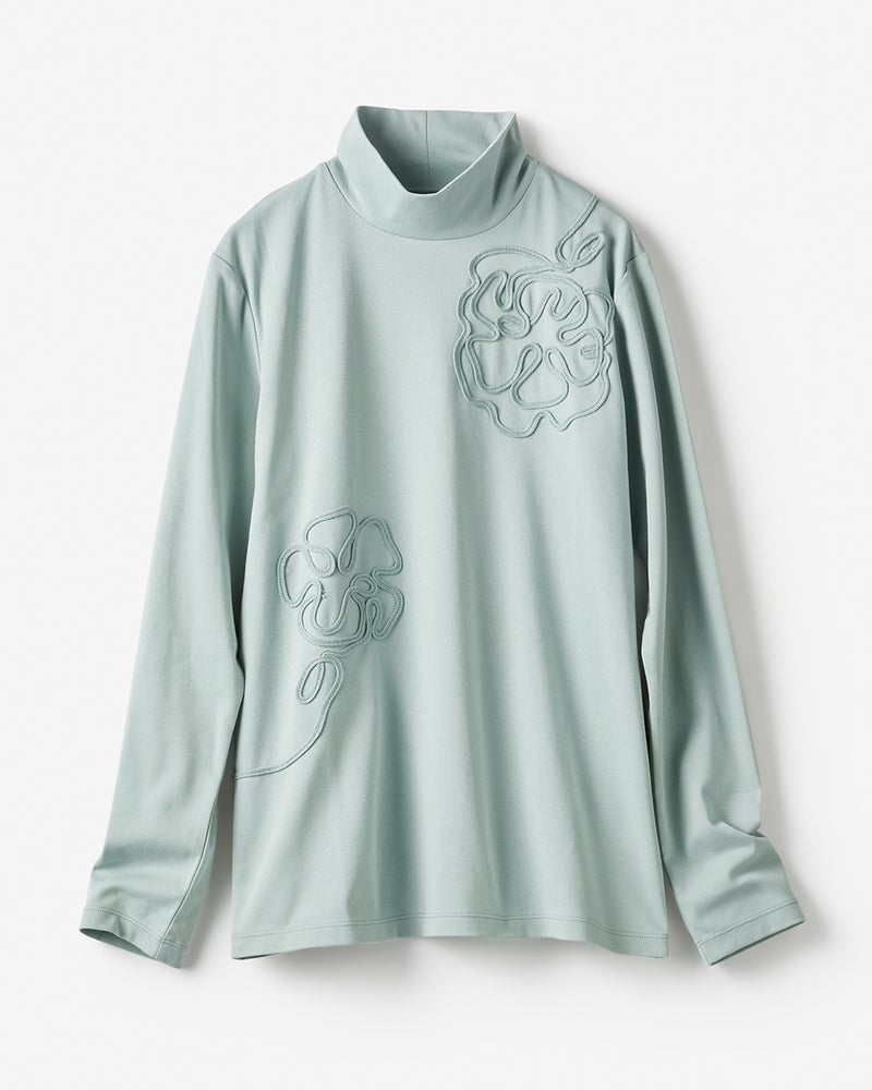 • 超長綿ハイネック/フラワーモチーフ 詳細画像 ダスティーブルー 1