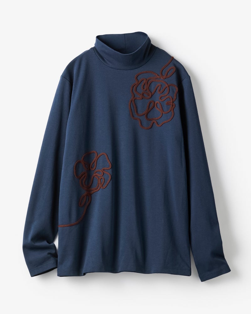 • 超長綿ハイネック/フラワーモチーフ 詳細画像 ネイビー 1