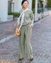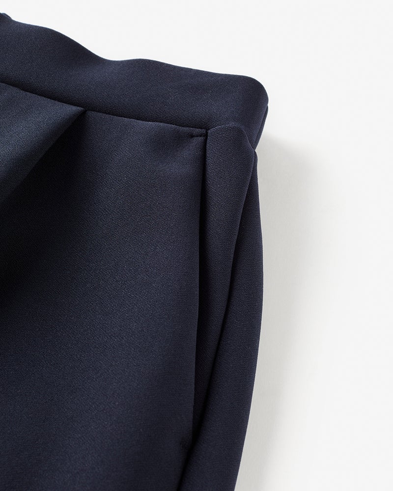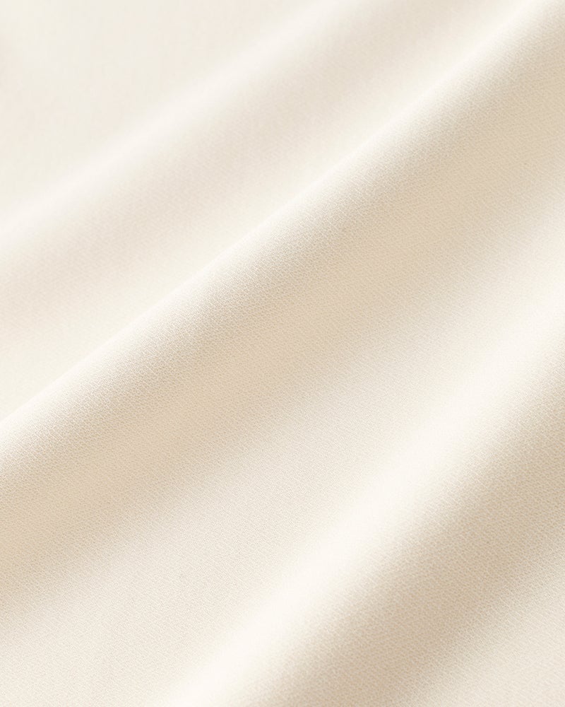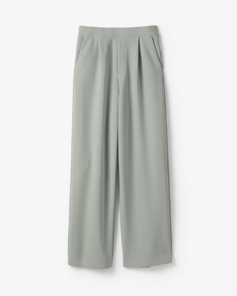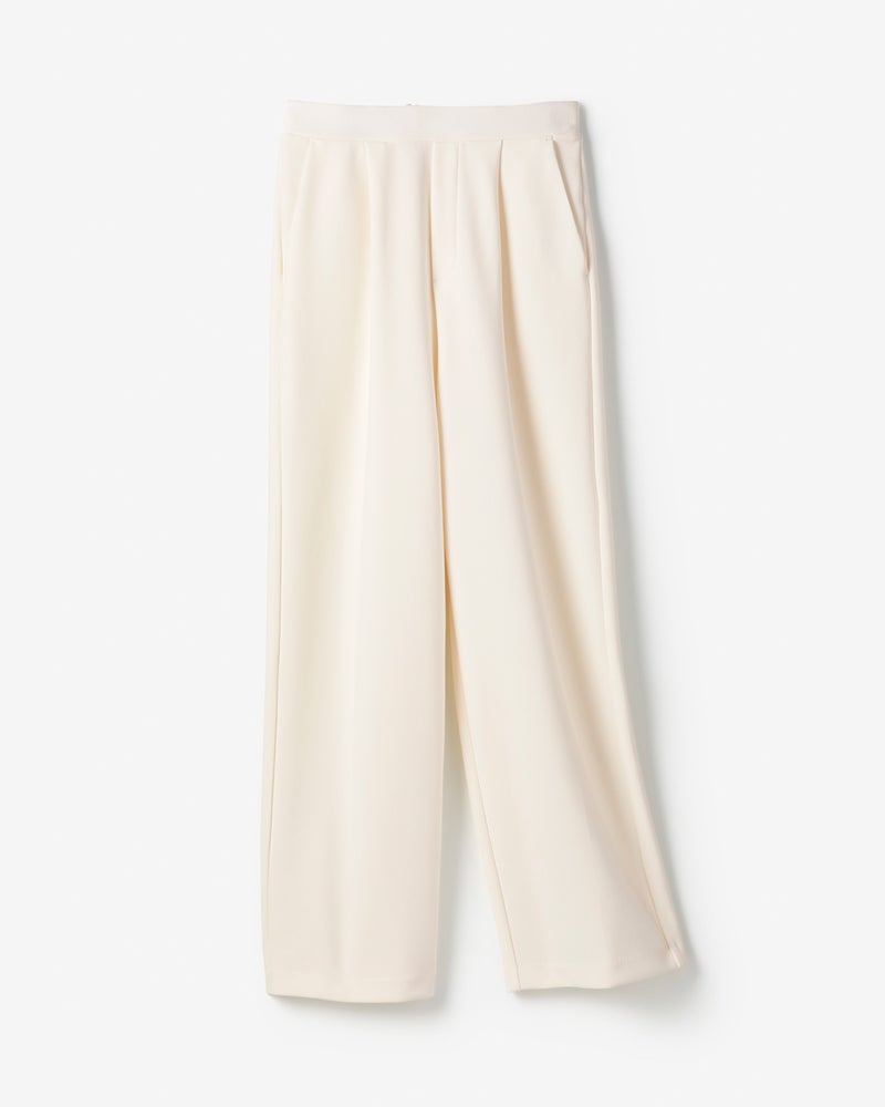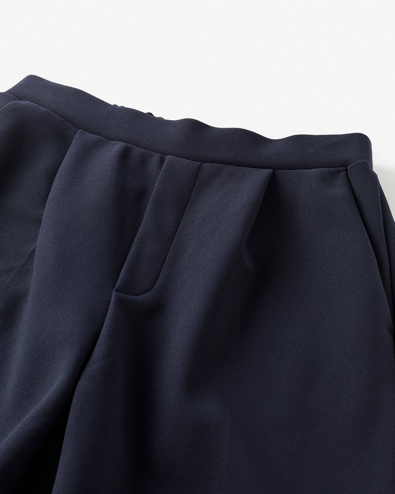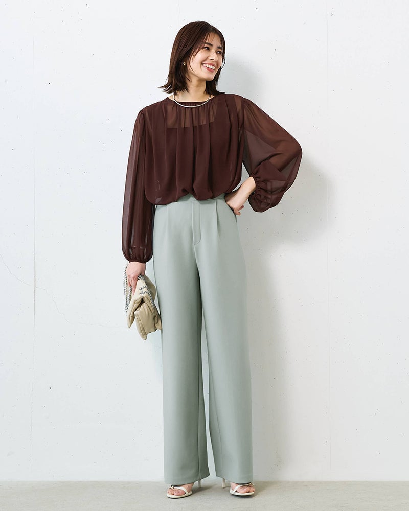 タックから落ちるドレープが、大人のレッグラインをきれいに見せる計算されたデザイン。なめらかな落ち感のあるカットソーのジョーゼット素材は、ビジネスやオケージョンもこなせる上質感。同素材のプルオーバーとのセットアップもおすすめ。こなれ見えしつつ、インテリジェンスも感じさせるたたずまいが完成します。