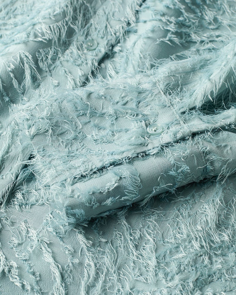 ふさふさのフェザーライクな質感は、カットジャカードによる手の込んだもの。生地の個性を際だたせるために、シンプルなフォルムに仕立てました。1枚でも主役を張れる着こなしに。トップスの上にさっと羽織れば、肩の力の抜けたカジュアルコーデが完成します。