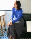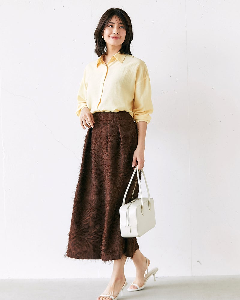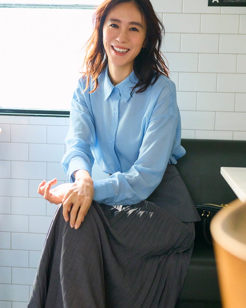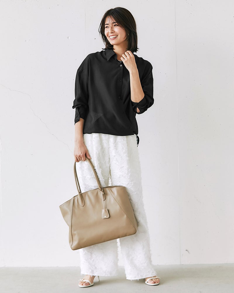 • シアーな素材感がスタイリングを軽やかに仕上げてくれる