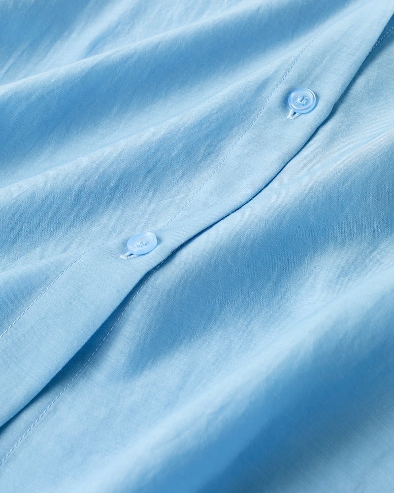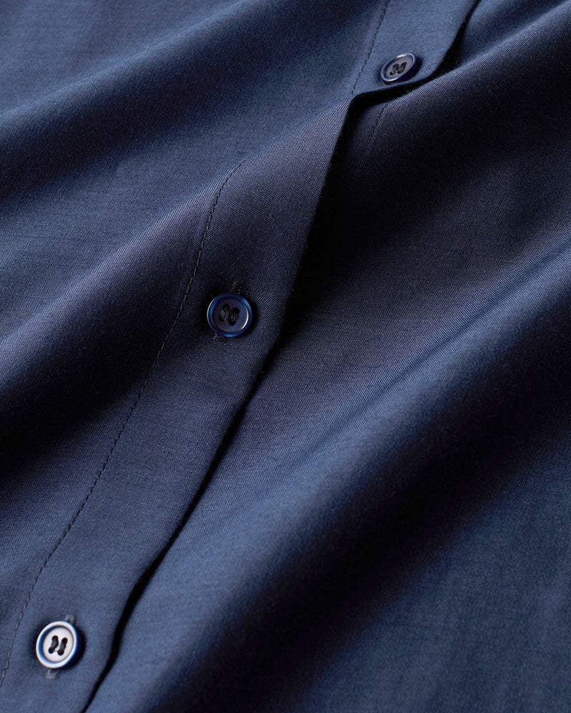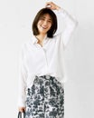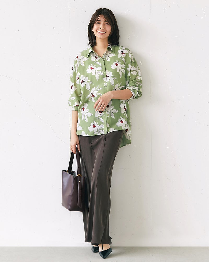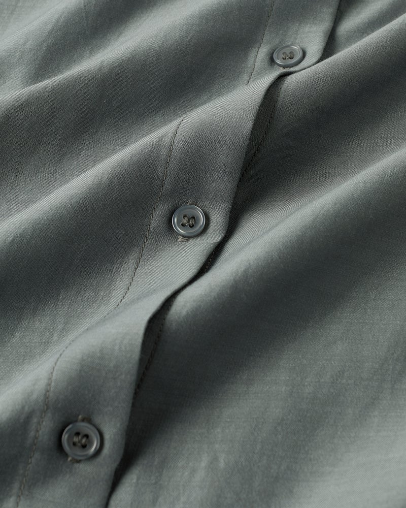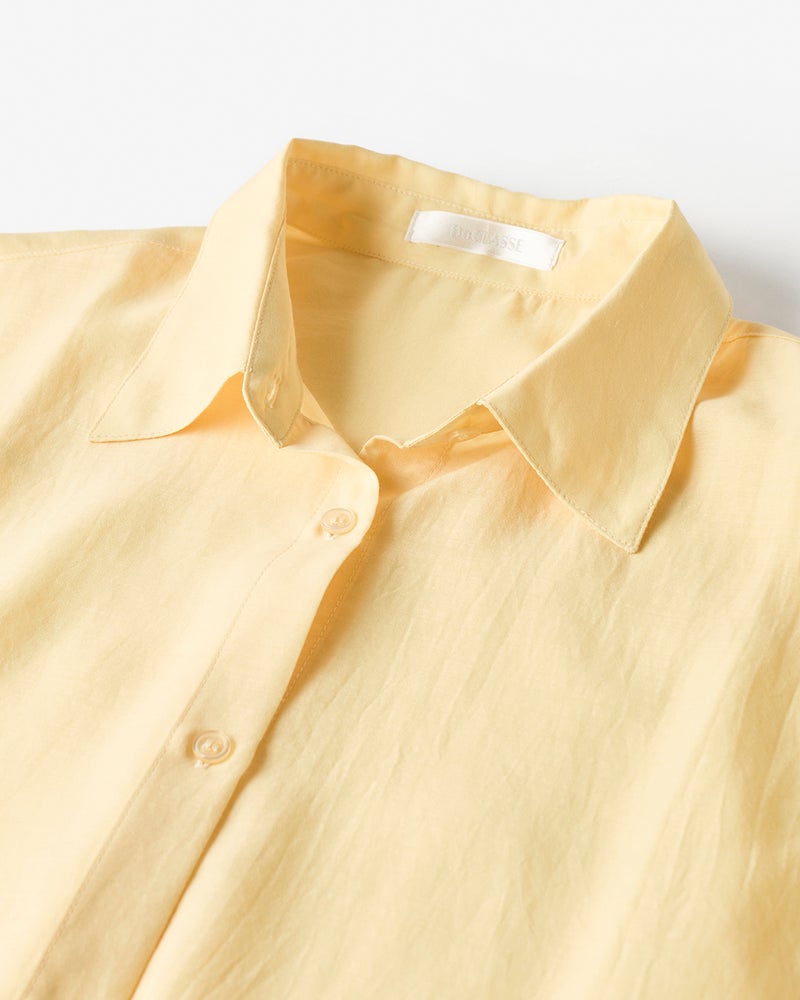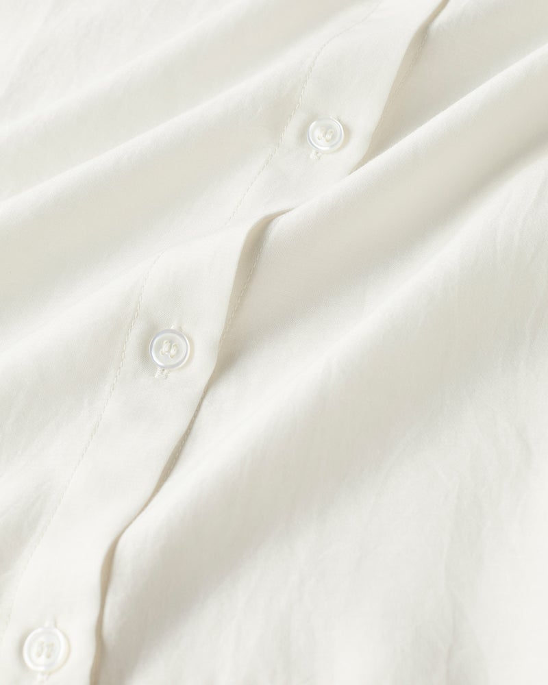 さらっと軽くドライなシアー素材のシャツ。ヒップラインの隠れる長めの丈感で、暖かい時期は羽織りとしても大活躍。さらに裾のボタンをカシュクール風に留めるアレンジも楽しめます。