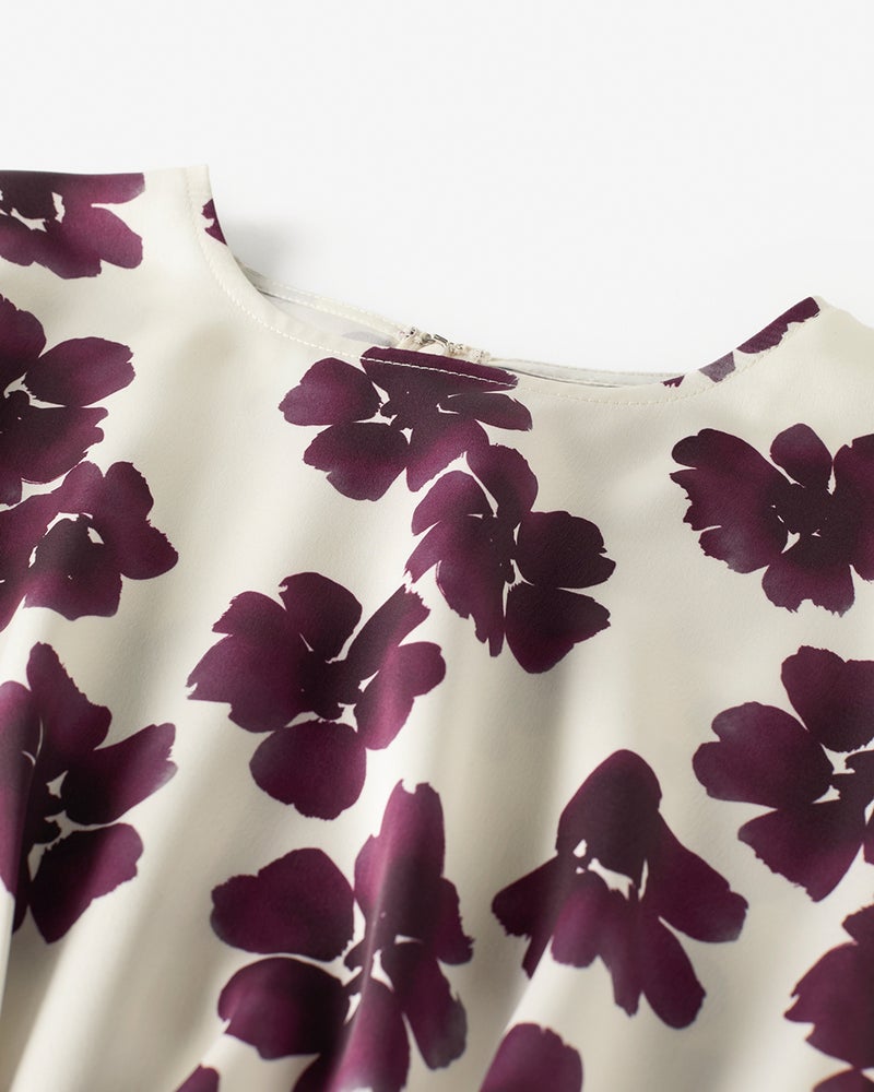 ダブルサテン・フラワープリントブラウス