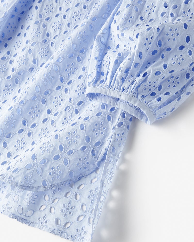 - 華やかで上品なカットワークデザイン風に揺れる軽やかなコットン100%のブラウスに、カットワーク刺繍を施して華やかに仕上げました。肌がのぞくデザインでも清潔感があり、風通しが良いので、夏でも心地良く着ていただけます。