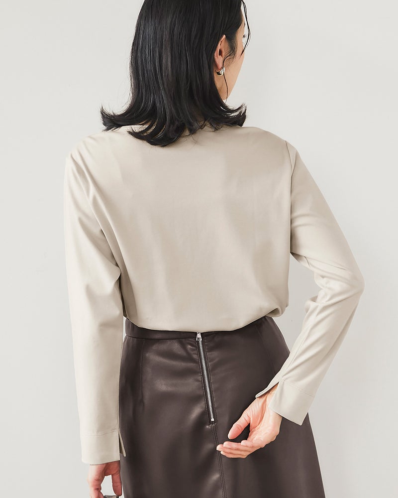 やや細見だった身頃は、前後にゆとりをもたせて今っぽい抜け感シルエットにチェンジ。ぴたぴたせず、体型を選ばずすっきり着こなせます。