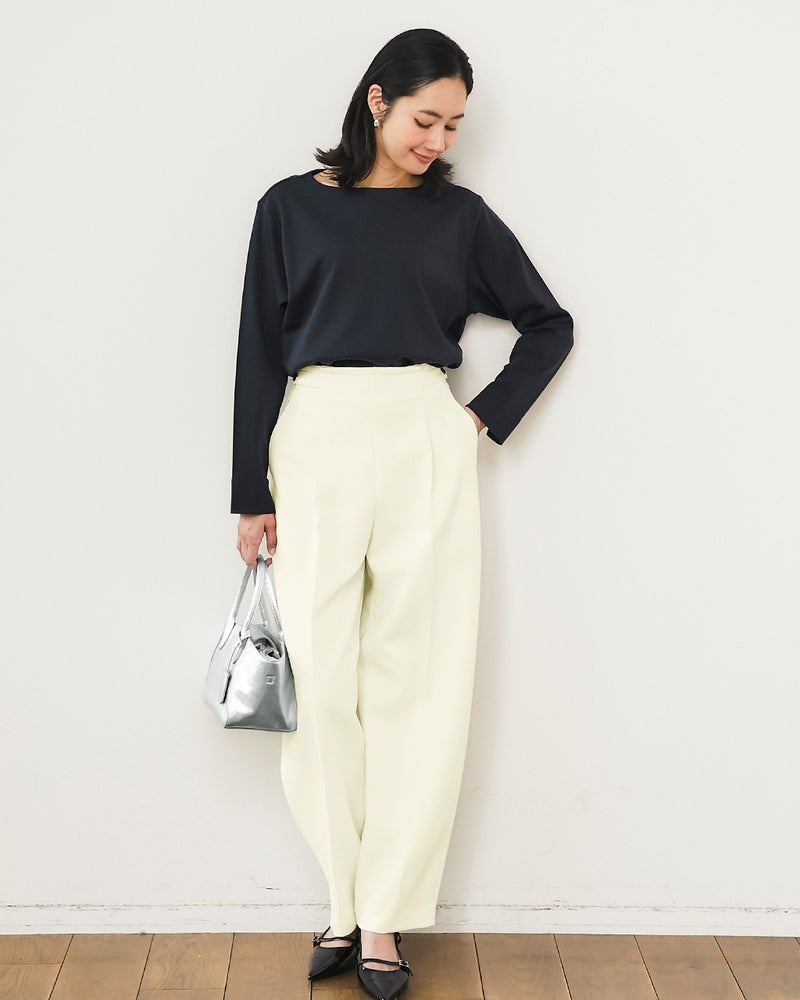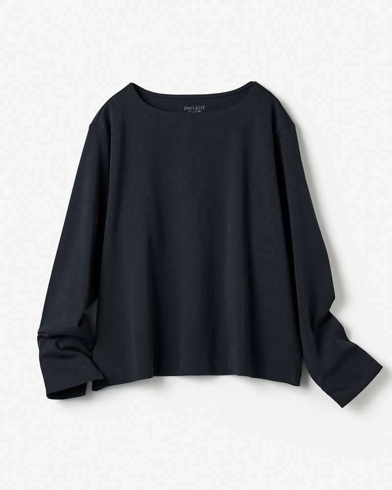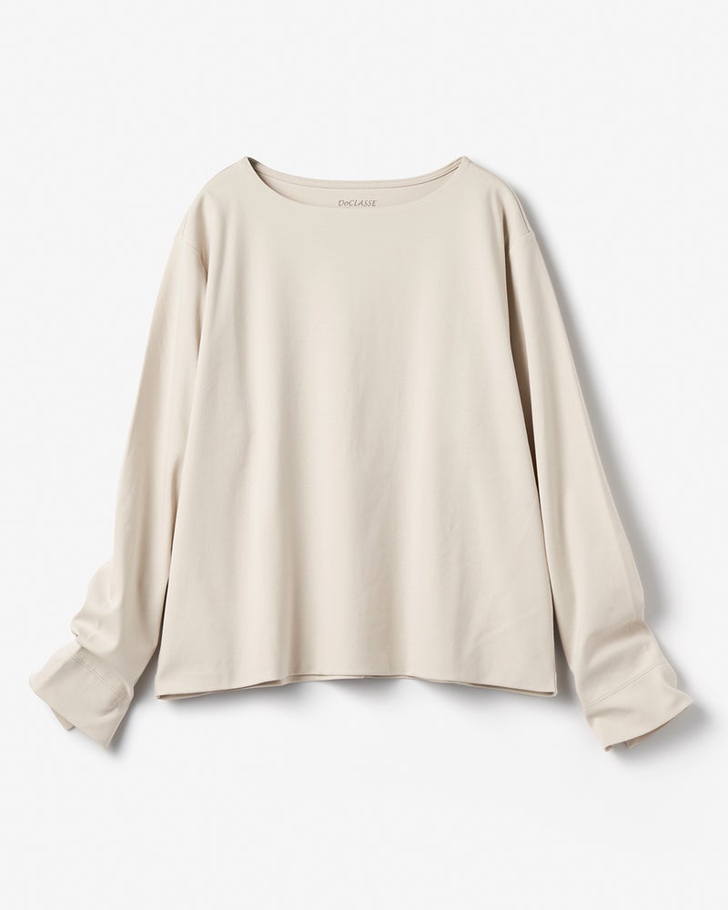 ボディラインを拾わないゆったりフォルム×コンパクトな丈感のボートネックは、ワイドパンツやフレアスカートなど旬のワイドボトムスにもぴったりの1着。