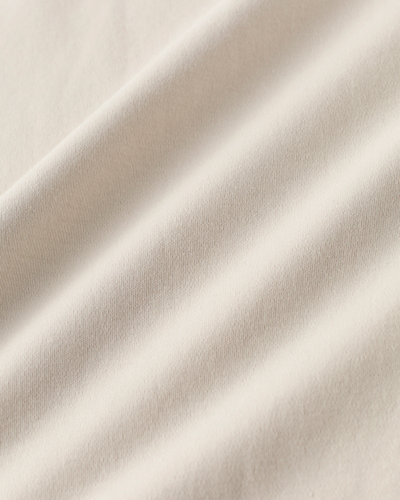 最高級コットン「超長綿」素材。なめらかな肌ざわり、ほのかな光沢。長い時間をかけて生育された超長繊維を厳選して編み立てた超長綿カットソー。素材の持つ上質感がブラウスにも負けない品格Tシャツの証です。 -