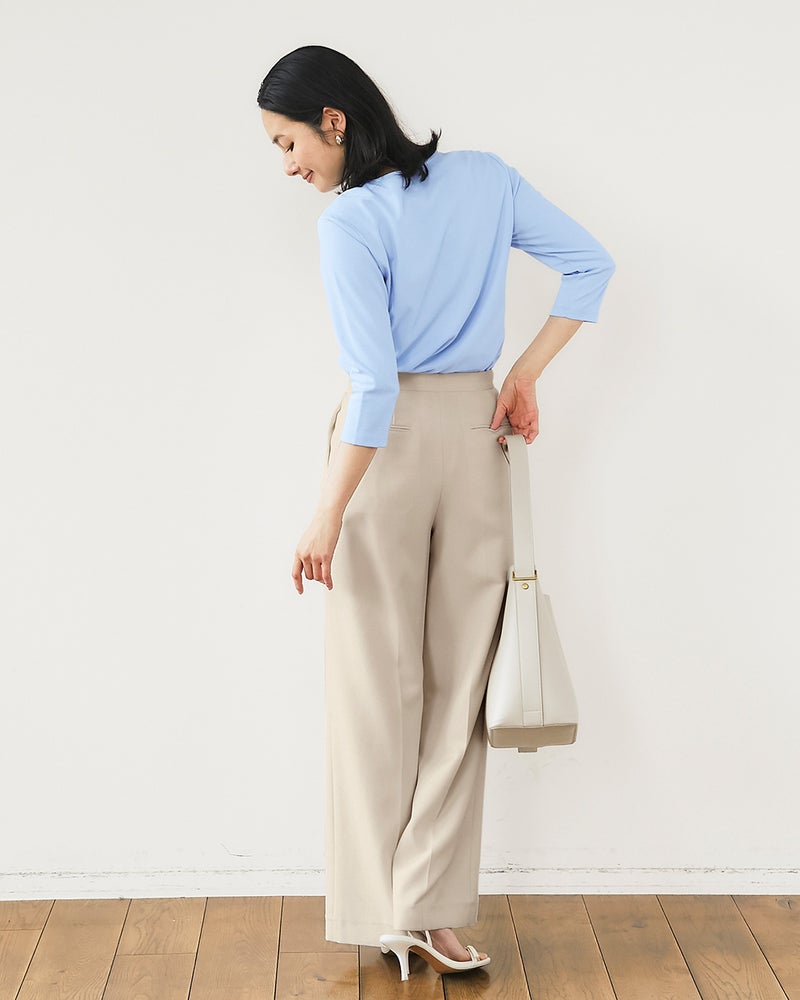 やや細見だった身頃は、前後にゆとりをもたせて今っぽい抜け感シルエットにチェンジ。ぴたぴたせず、体型を選ばずすっきり着こなせます。