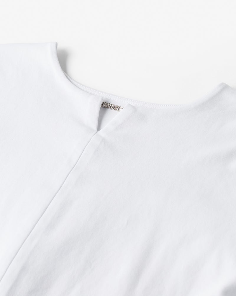 最高級コットン「超長綿」素材。なめらかな肌ざわり、ほのかな光沢。長い時間をかけて生育された超長繊維を厳選して編み立てた超長綿カットソー。素材の持つ上質感がブラウスにも負けない品格Tシャツの証です。 -