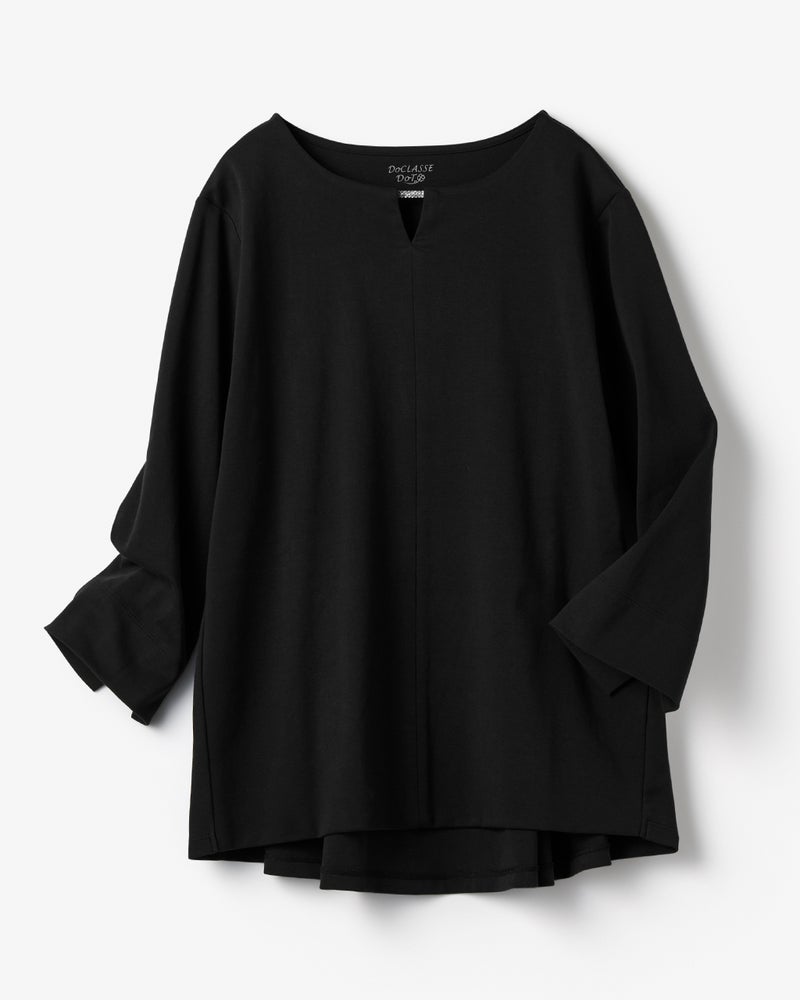 肌触り良く、体型をカバーしたい私にはちょうど良い長さでした。首回りもちょうど良く、袖口のデザインも良い感じです。