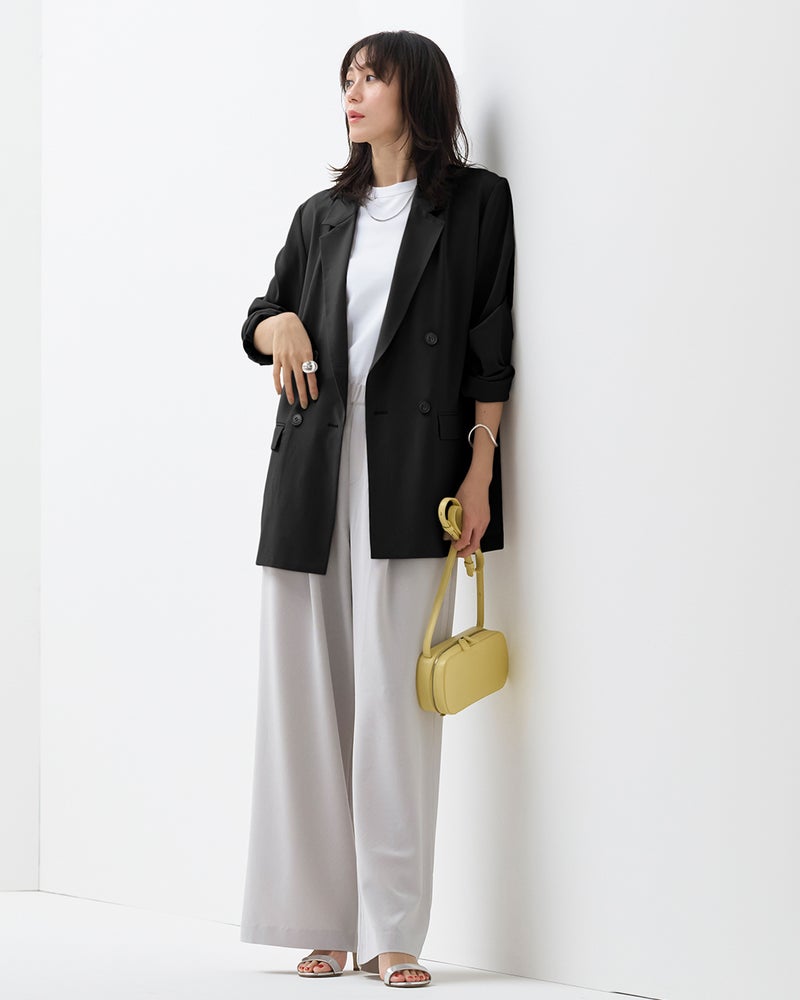 ゆったりダブル仕立てが今っぽいテーラードジャケット