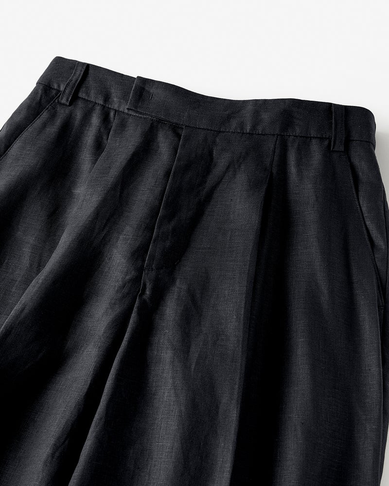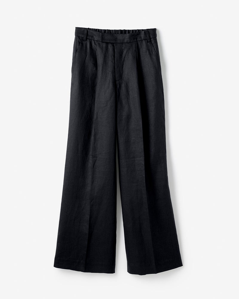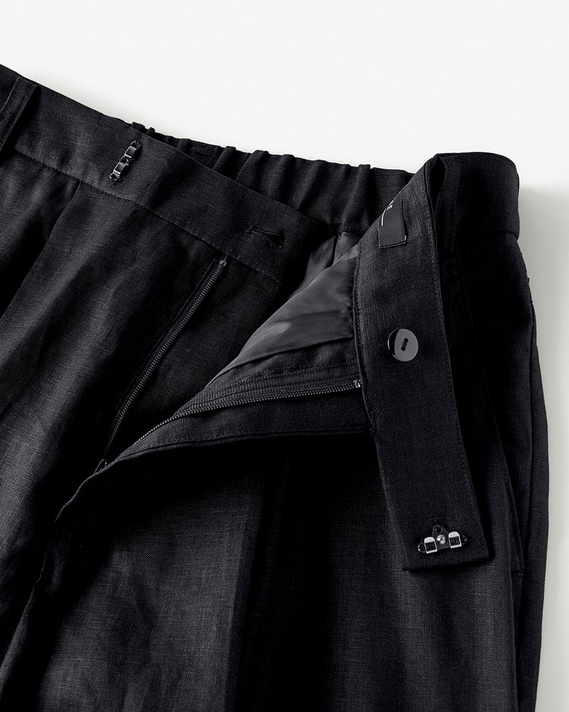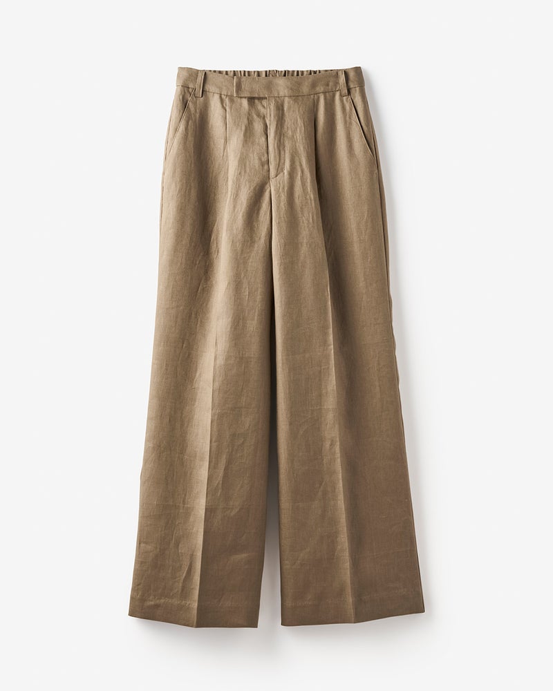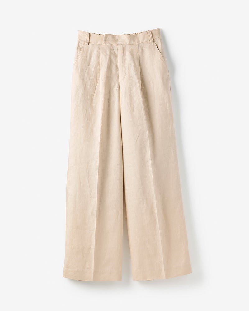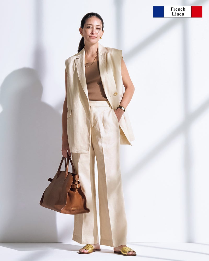 太すぎない筒幅のセミワイドパンツは、お仕事にもオケージョンにも似合うエレガントな雰囲気。ウエストから腰まではワンタックのすっきり仕立て、脚らのラインを拾わないすとんと落ちるセミワイドシルエットは体型を問わない鉄板シルエット。同素材のジレと合わせたスーチングスタイルなら、夏のオケージョンにもぴったりです。