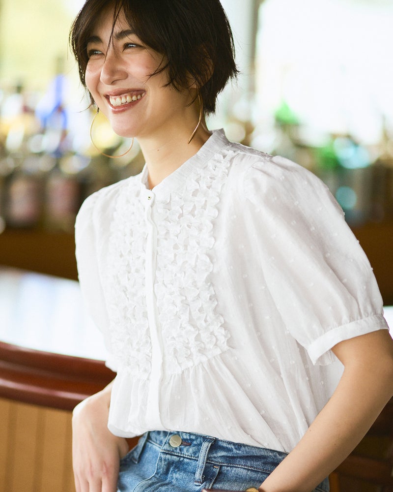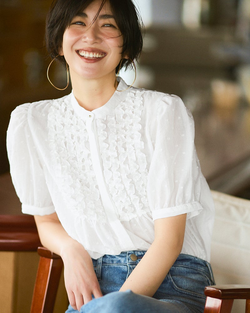 カジュアルもきれいめも得意なフリルブラウス