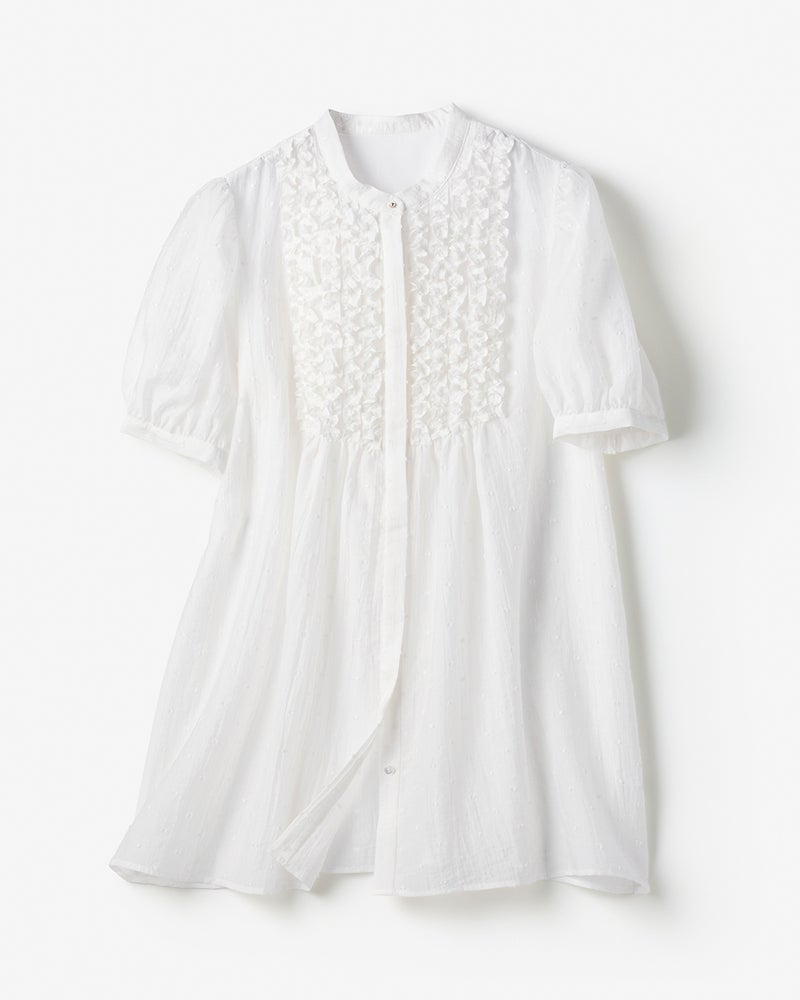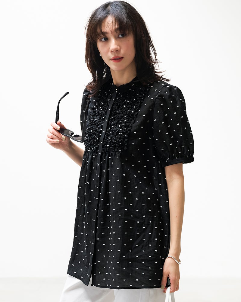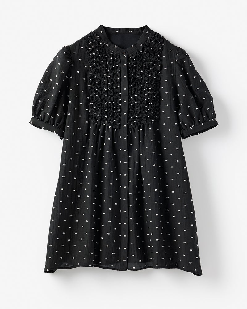 ドットジャカード・フリルブラウス