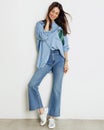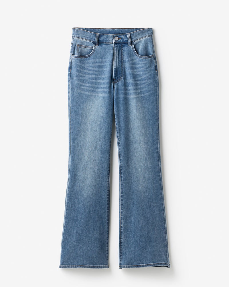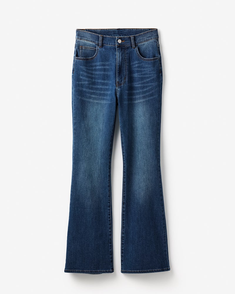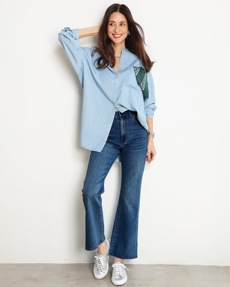 オールシーズン着回しやすい軽さがうれしい9.5オンスのライトデニムは、上質な生地感ながら楽々ストレッチして、抜群の動きやすさです。きれいめに着こなしたい方にお勧めしたいのが、女性らしいフレアデニム。膝から下が緩やかに広がるシルエットが、骨格悩みをカバーしながら脚長美脚を演出します。