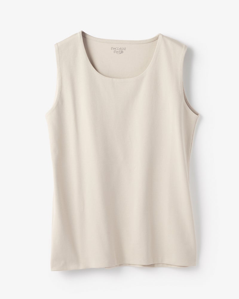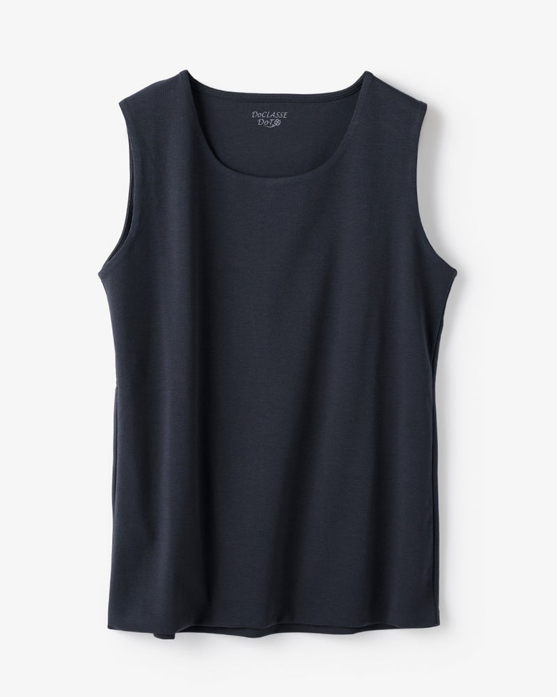 人気の透け感アイテムは、露出を控えたインナー選びが重要ポイント。前身頃を二重仕立てにして下着の透けを抑えたドゥクラッセTシャツから、ノースリーブのインナータイプが登場しました!シンプルなクルーネックは、ジャケットからニットまでどんな重ね着にも対応可能です。