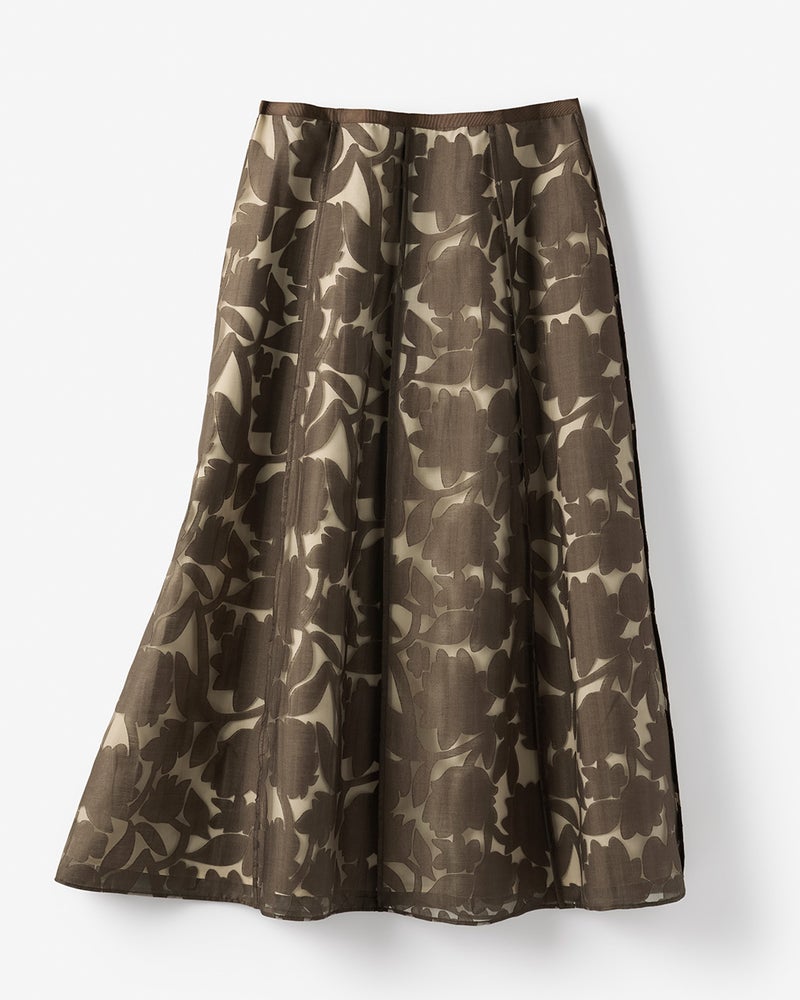 タックやギャザーを入れずに切り替えでフレアラインを形作った、立体Aラインスカート。ギャザーのもたつきがない分、すっきりスマートに着られるからお腹周りに悩みのある方にもおすすめ。ブラウスとセットアップで華やかに装うのもおすすめです。