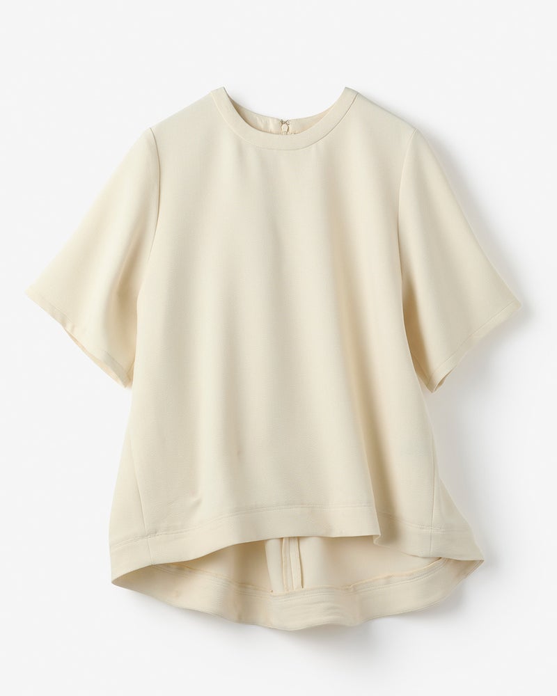 お仕事にも休日にも活躍する、さらっと涼しいリネン調素材のゆったりブラウス。節の浮き上がるスラブ風の表情、シワが気にならない機能性、そして前後差をつけた立体的なフォルムで、さらっと1枚着るだけでサマになる大人のための1着に。同素材のシアースカートとセットアップで着こなせば、時短できれいめスタイルが叶います。