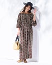 UVスラブ・ギャザーネックワンピース/長め丈