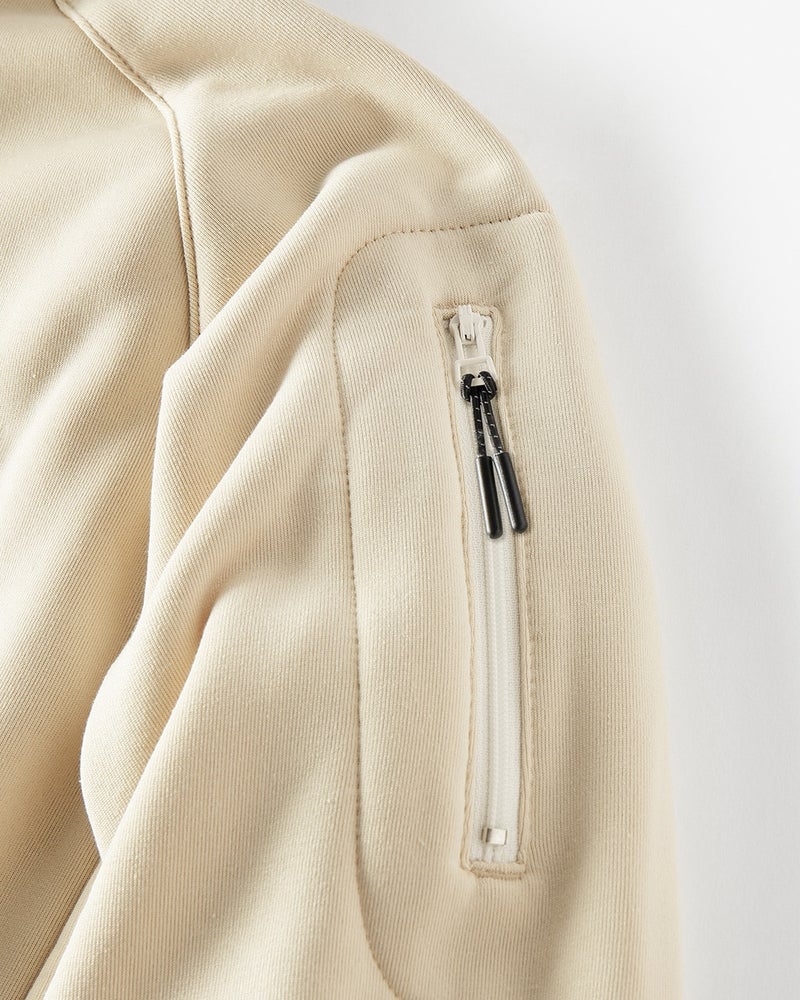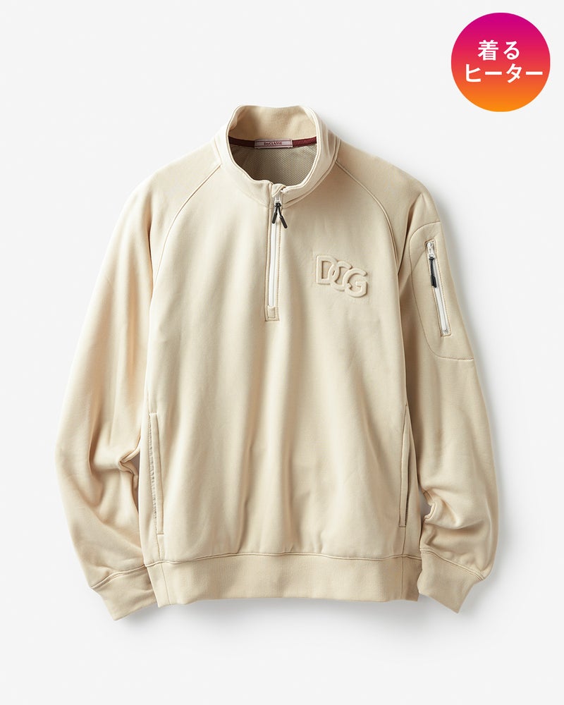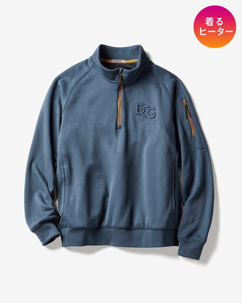 発明と呼びたい新商品が登場。軽くて柔らかなフリースに、軽量カーボンヒーターを付けました。ベストやコートではなく、フリースブルゾンに搭載というのが新発想。すっきりしたシルエット。ストレッチ性を発揮し動きやすい。腕の可動域が広くゴルフ時にスイングをしやすいラグランスリーブ。配色ファスナーと胸のエンボスプリントが洒脱で、左腕にはジッパー付きポケットを配しています。エンボス加工によるロゴデザインが、さりげないアクセントに。