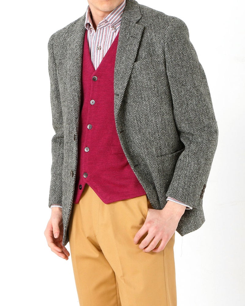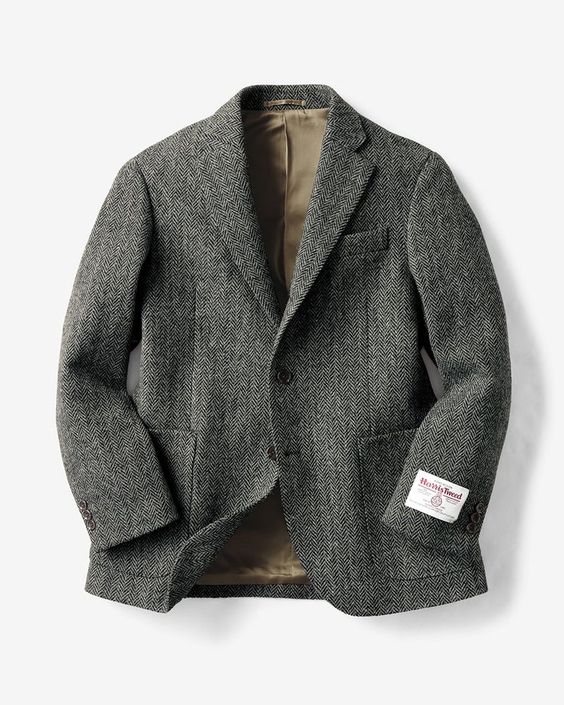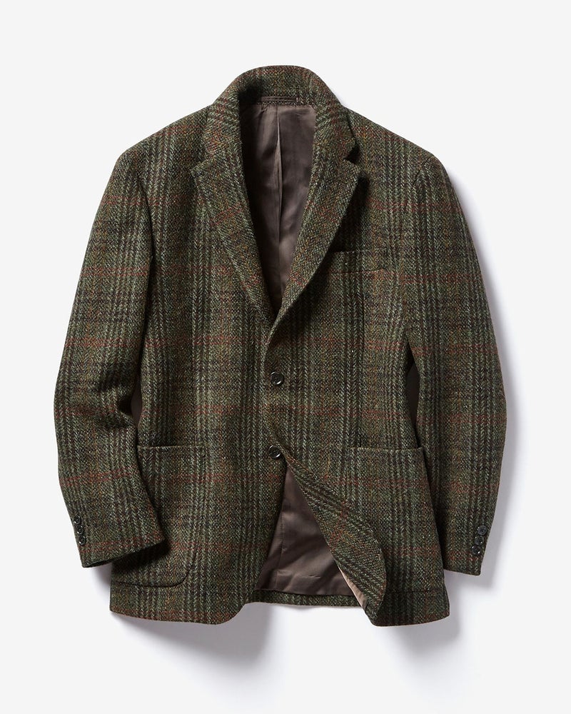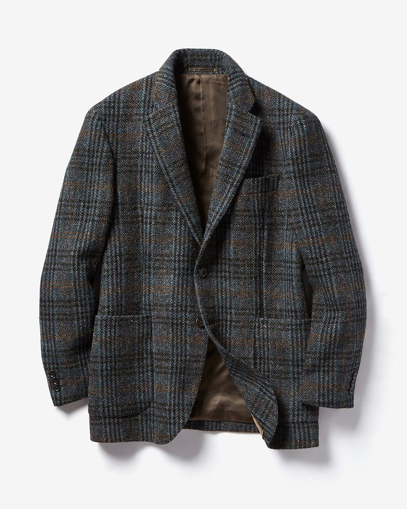 FEATHER WEIGHTのしなやかなハリスツイードを、3つボタン・サイドベンツのベーシックなテーラードジャケットに仕立てました。生地の風格をひきたてる英国テイストのコーディネートもよし、デニム等を合わせてコンテンポラリーに着くずすも、またよし。衿裏と内ポケット口には、補強とアクセントを兼ねたカラークロスをあしらっています。