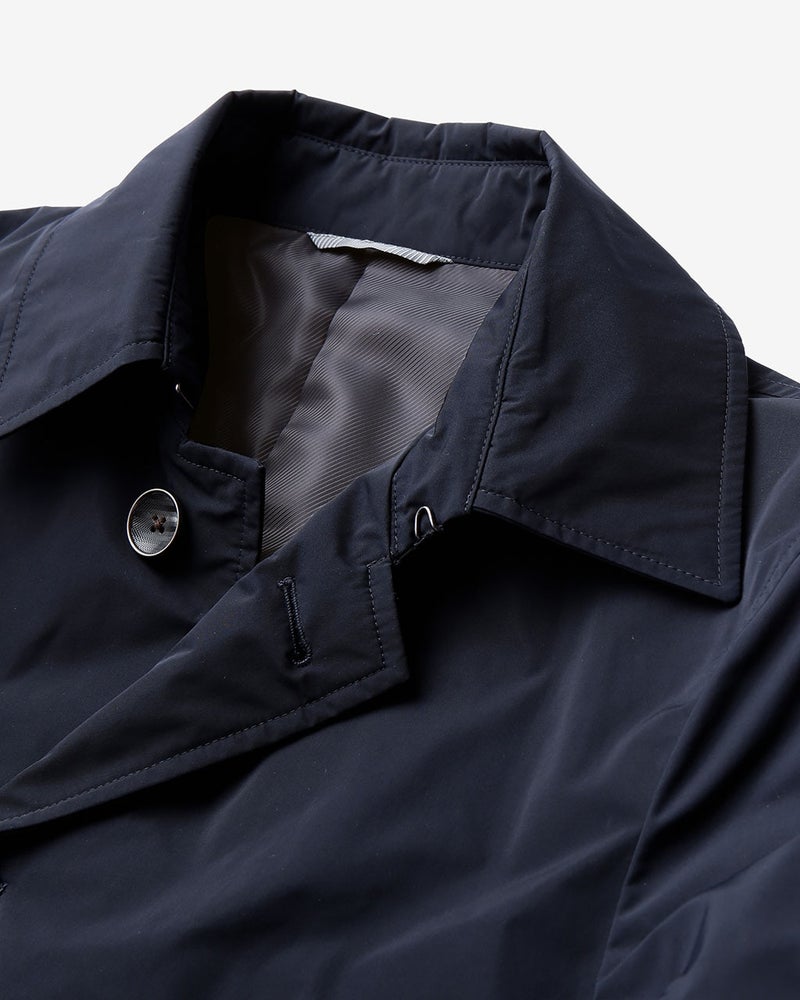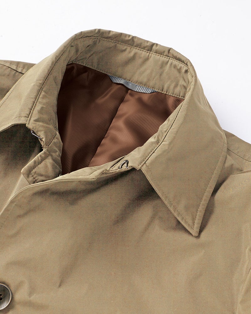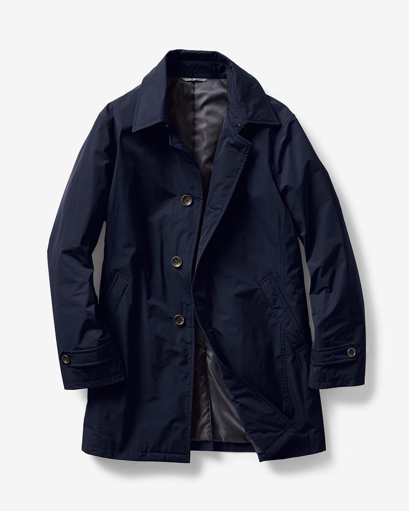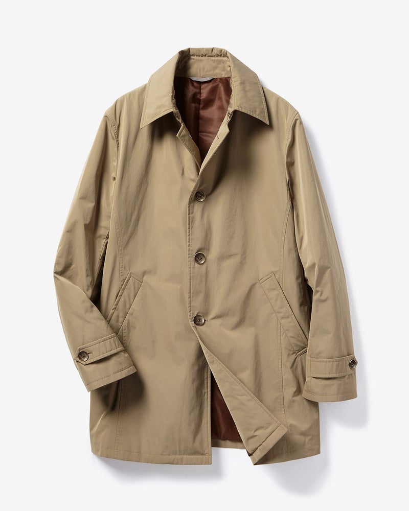 かなり寒い季節まで着られる、中綿入りのステンカラーコート。とてもシンプルでありながら、快適、しかもスタイリッシュ。実は、随所にさまざまな新機軸を取り入れました。