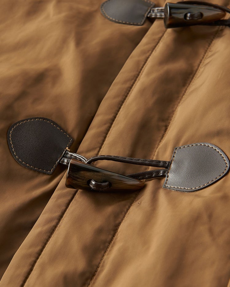 大人世代の郷愁を誘うダッフルコートも、素材が変わるとぐっとスポーティで新鮮な表情に。見た目だけではなく、素材そのものも形状記憶でシワになりにくいなど、機能性にすぐれています。中綿入り、さらに裏地にはフランネルをあしらい、申し分のないあたたかさ。