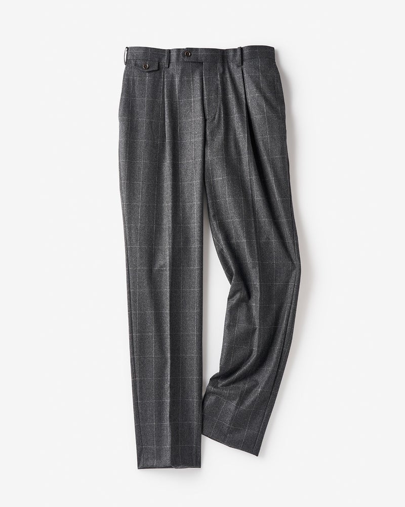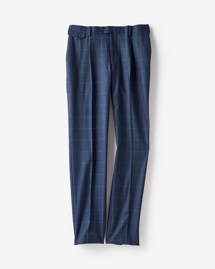 1936年にイタリアのビエラで創業された名門「ヴィタルバルべリスカノニコ※」の素材を使用したパンツです。本格的な仕立てで、イタリア素材らしいしなやかな着心地が存分に楽しめます。ビジネスシーンや少しドレスアップしたい時に絶好のモデルです。