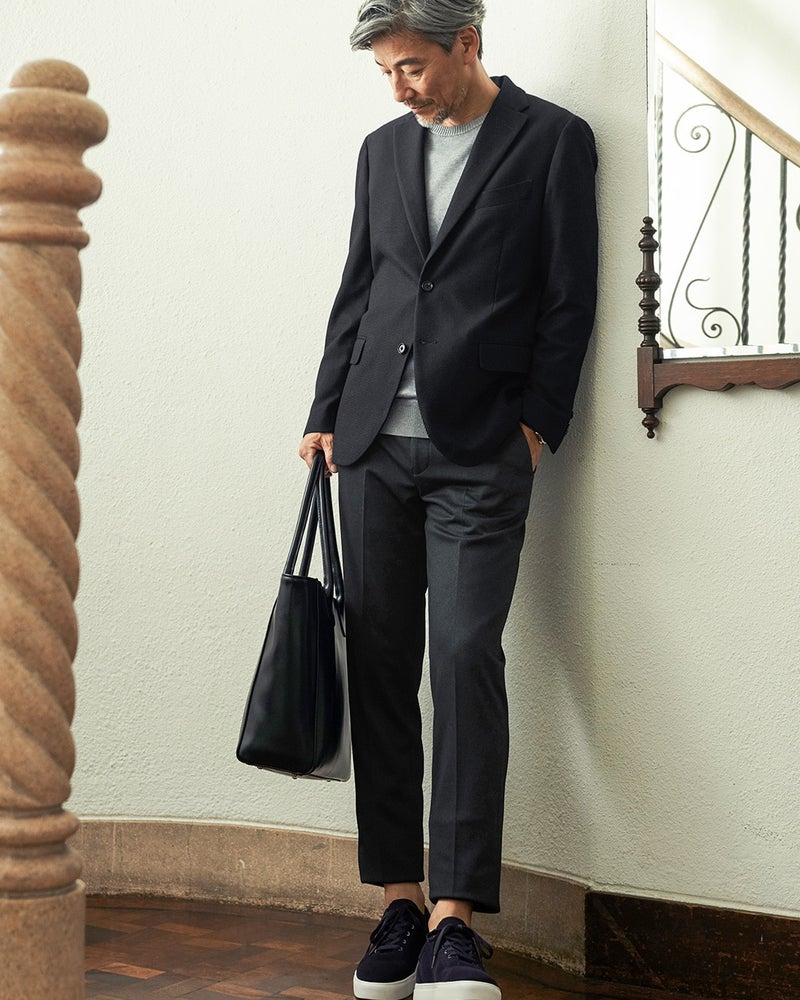 最新のストレッチ素材で、1日中はいても疲れない。 素材に採用したのは最新の合繊系生地。伸縮性と通気性が備わっているので、いつも快適な着心地が楽しめます。 -