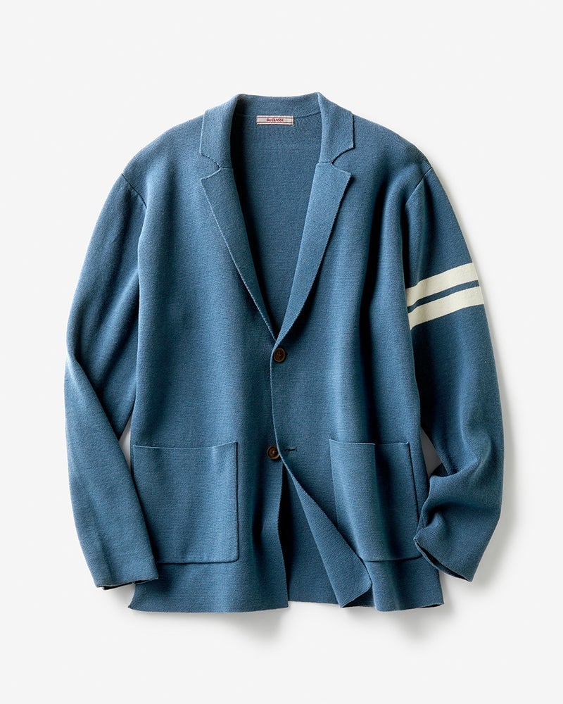 カジュアル過ぎず、フォーマル過ぎない、ミラノリブ編みのニットジャケット。特殊紡績した開発糸のおかげで、ニットなのに、家庭で洗濯できて、お手入れも簡単。毛玉もできにくい。テーラードジャケットのように端整なルックスに、袖の2本ラインをアクセントに効かせたデザインが、なんとも粋で秀逸。コーディネイトしやすく、さまざまなシーンで着用できて、重宝します。