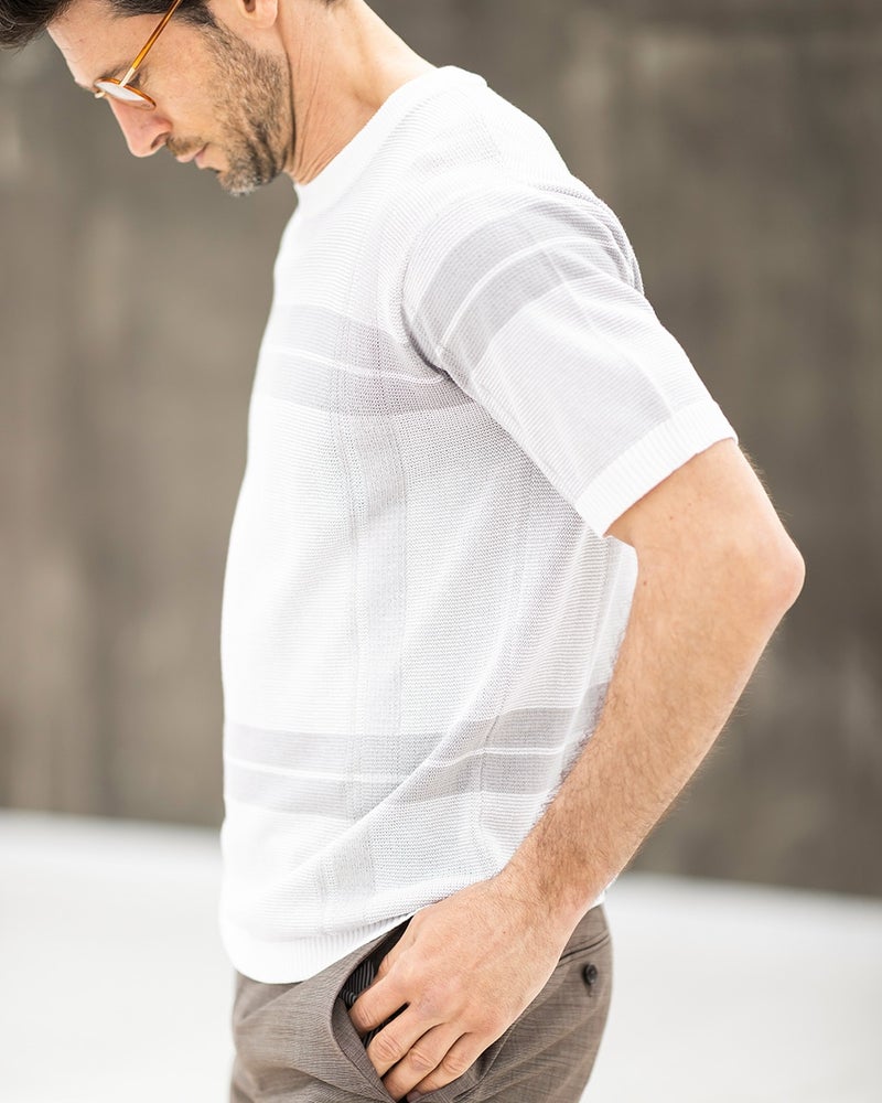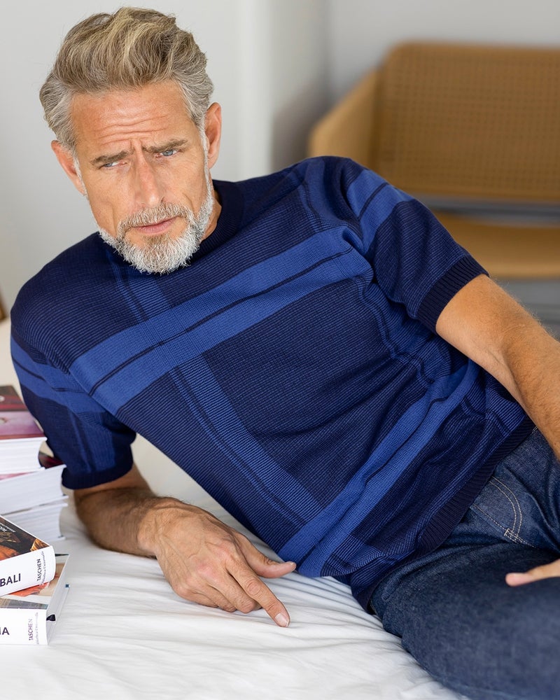 大胆に配したチェック柄は、インパクトがありながらも、洗練された印象を与えます。一枚で着て存在感があり、ジャケットインにすれば、洒落たアクセントに。サラッとドライな肌触り。誰でも着やすいジャストなサイズ感。コットン100%ニットなのに、家庭で洗える、スグレものです。