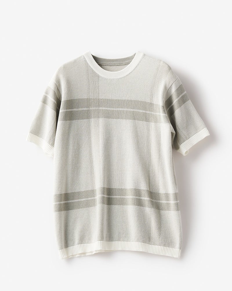 • ビッグチェック柄半袖ニット 詳細画像 グレーパターン 1