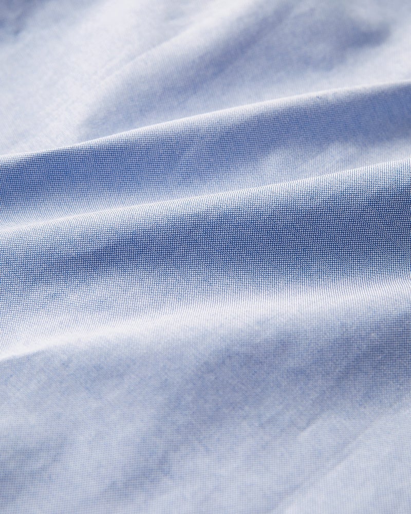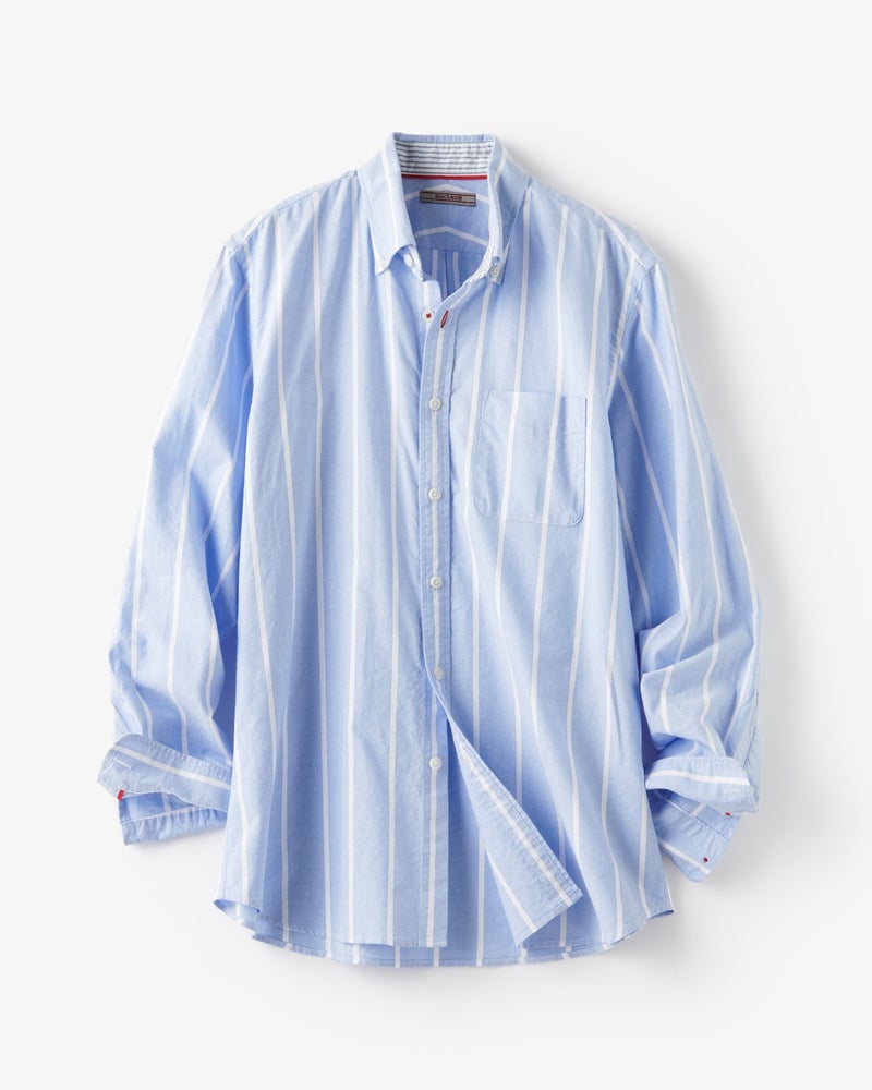 生地、色柄、設計、縫製、すべてにこだわり抜いたシャツ。軽く爽やかに織り上げた綿100%オックスフォード生地に洗いをかけ、ソフトな風合いを引き出しました。ヨークや台襟は、カーブを多用した身体に沿う仕立てで、動きやすさも抜群。着丈は裾を出した着こなしでもサマになる長さに仕上げたオンオフ兼用。袖口と襟裏にはさりげなく配色テープを効かせています。