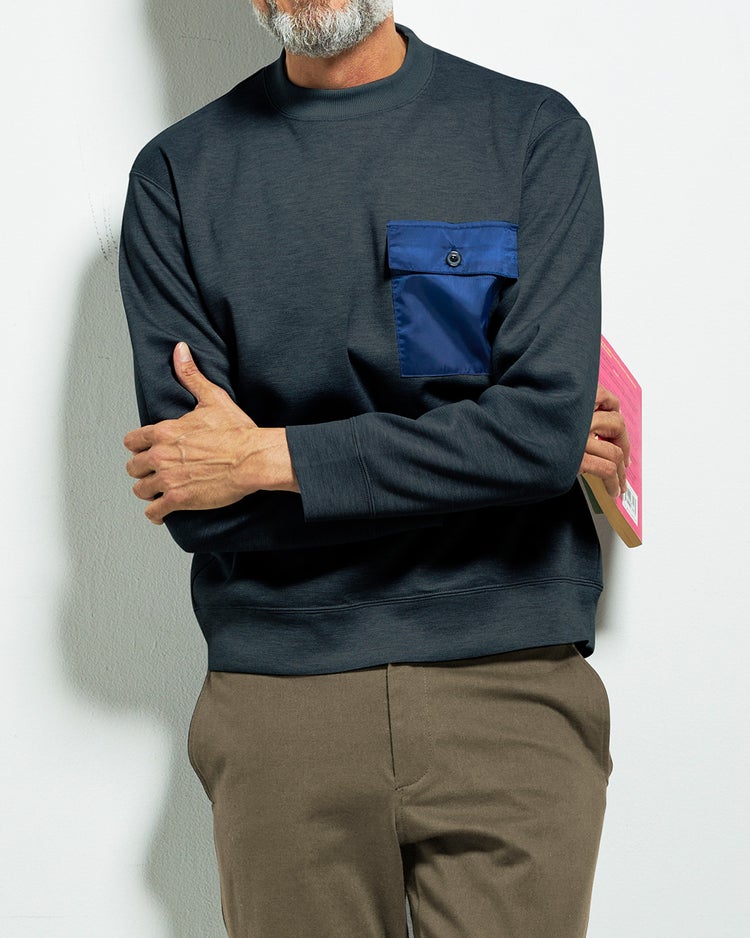 • エアポンチ・布帛ポケットクルーネック 詳細画像 ミッドナイトブルー 1