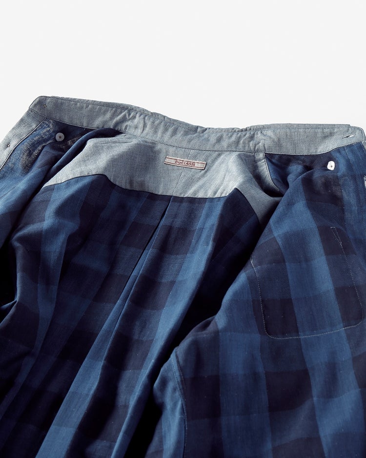 シャツアウターとしても着られるリラックス感のあるシャツ。ダンガリーとチェック柄を組み合わせた創造性が魅力的です。手にした瞬間わかる柔らかな肌触り。カジュアルシャツでありながら、ヨークや台襟は、カーブを多用した身体に沿う仕立てで、動きやすく快適。洗いざらしのまま飾らず着てもサマになります。