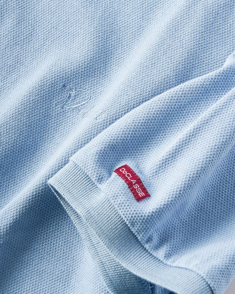 綿100%の鹿の子生地で、中でも少し地厚の通気性・伸縮性に優れて丈夫な鬼鹿の子を採用。さらに衿ぐりにはDoCLASSEロゴ入り。