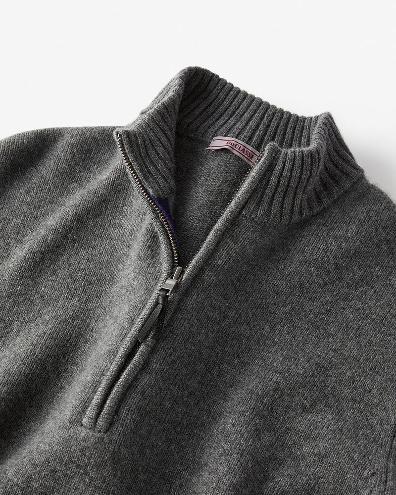 - ハーフジップニットを探していた所カシミヤ100%でSALEになっていたのですぐ購入させて頂きました。サイズ感ぴったりで触り心地もとても柔らかく素晴らしかったですが、ジップに本革が付いていると書いてありましたが付いていなかったのでそこだけ残念でした。