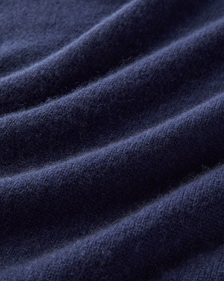 デイリーウェアにこそ高品質を。UPW社の原毛16マイクロンのカシミヤ100%使用。風合い出しの水洗いに時間をかけて仕上げ、カシミヤならではのふっくらソフトな風合いと軽い触感を際立たせました。
